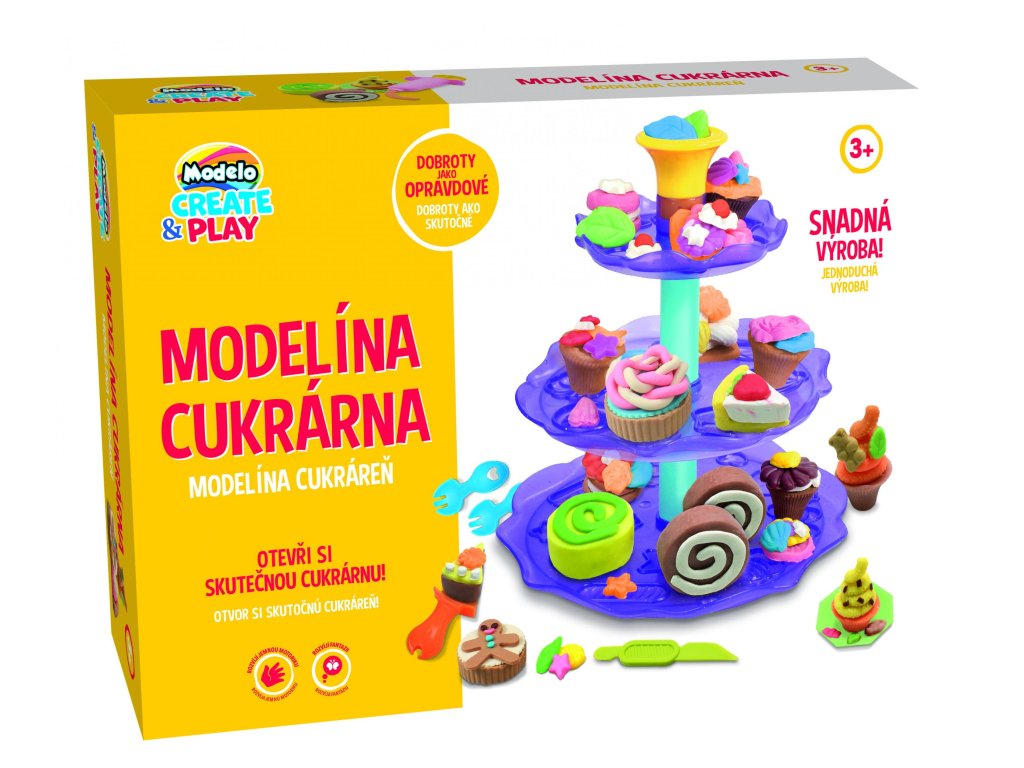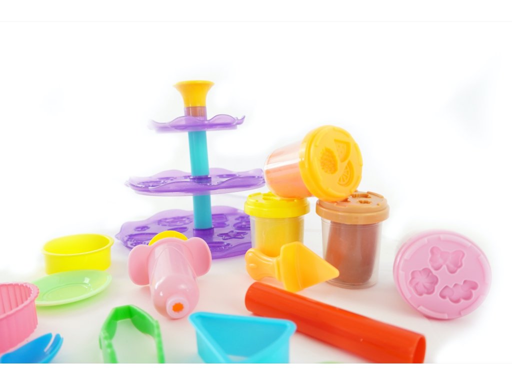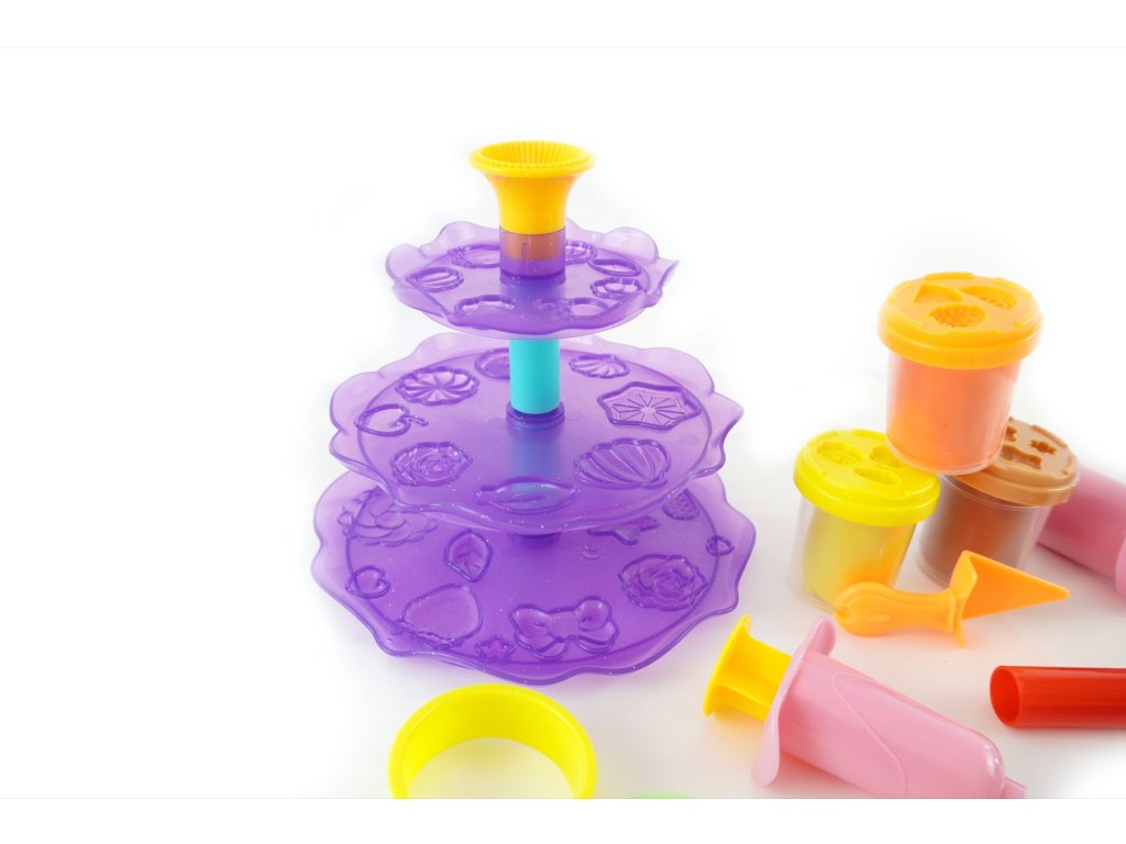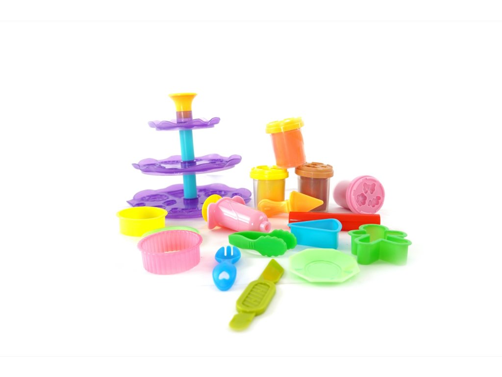 Kvalitní, lehce tvarovatelná modelína, která nevysychá. Balení obsahuje 4 modelíny, patrový podnos na dortíky a velké množství tvarovátek na modelínu.