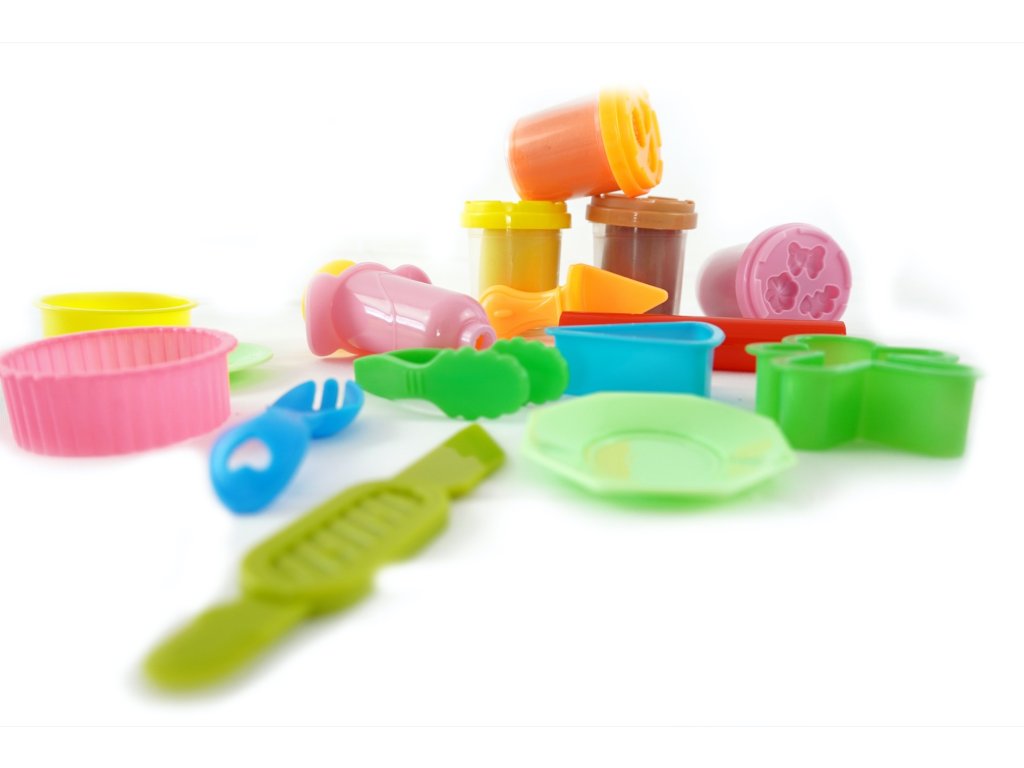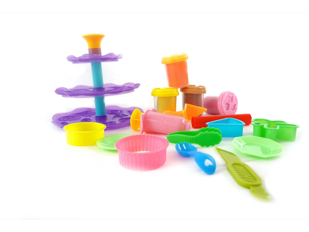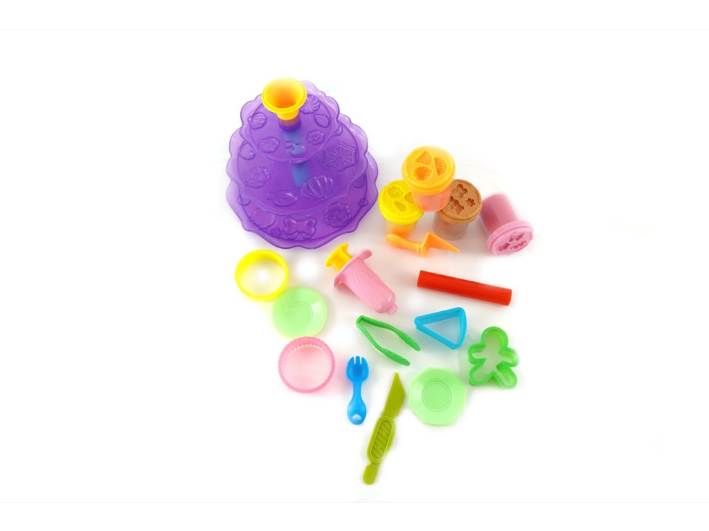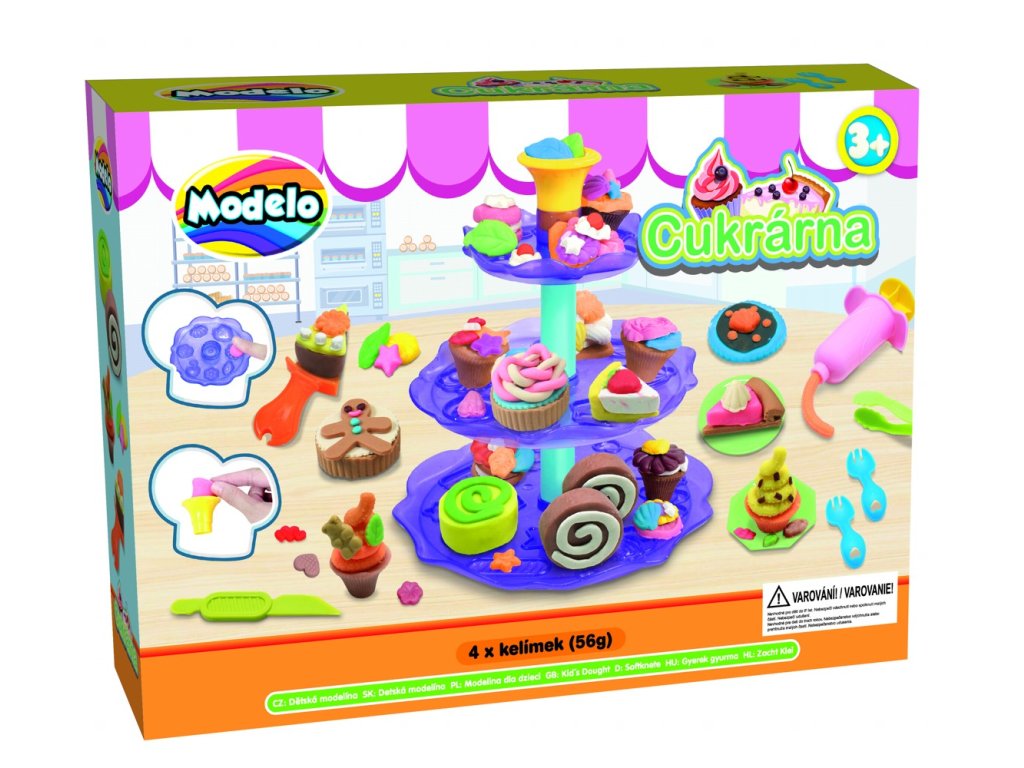Kvalitní, lehce tvarovatelná modelína, která nevysychá. Balení obsahuje 4 modelíny, patrový podnos na dortíky a velké množství tvarovátek na modelínu.