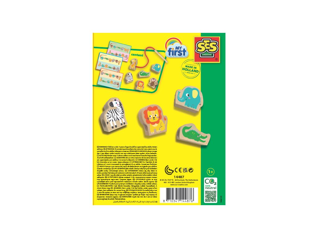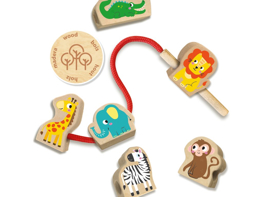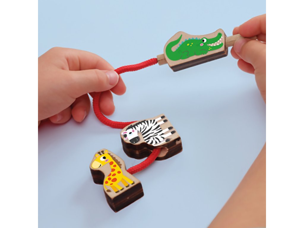 Dokážete navléknout roztomilá zvířátka ve správném pořadí na korálkový náhrdelník? Tvary jsou vyrobeny ze skutečného dřeva a lze je navlékat ve správném pořadí pomocí karet s pokyny. Dokážete vytvořit všech šest příkladů? Žirafa je připevněna na šňůrce, takže ostatní korálky nesklouzávají a s dřevěnou jehlou je navlékání mnohem jednodušší. Stimuluje kreativitu, napomáhá rozvoji jemné motoriky a manuální dovednosti navlékání. Obsauhuje: Navlékací šňůrku s nasazenou dřevěnou jehlou a pevným zvířecím korálkem, 5 korálků, vzorové karty. Rozměry balení: 20 x 15 x 4 cm. Věk: 1+