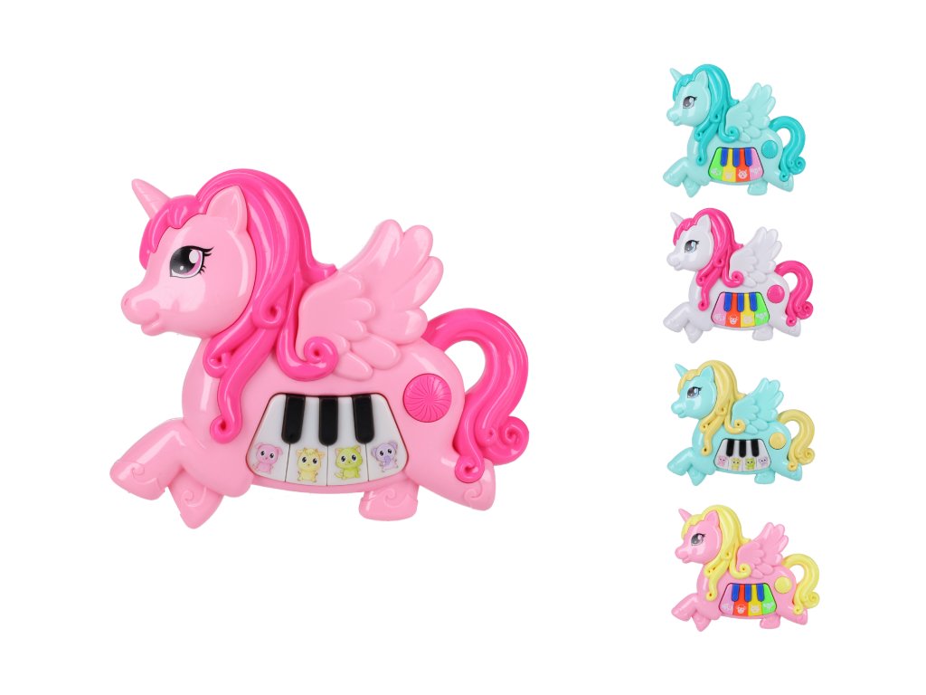 Barevné piano ve tvaru jednorožce se zvukovými a světelnými efekty bude zábavnou formou u dětí rozvíjet cit pro hudbu a jejich motoriku.