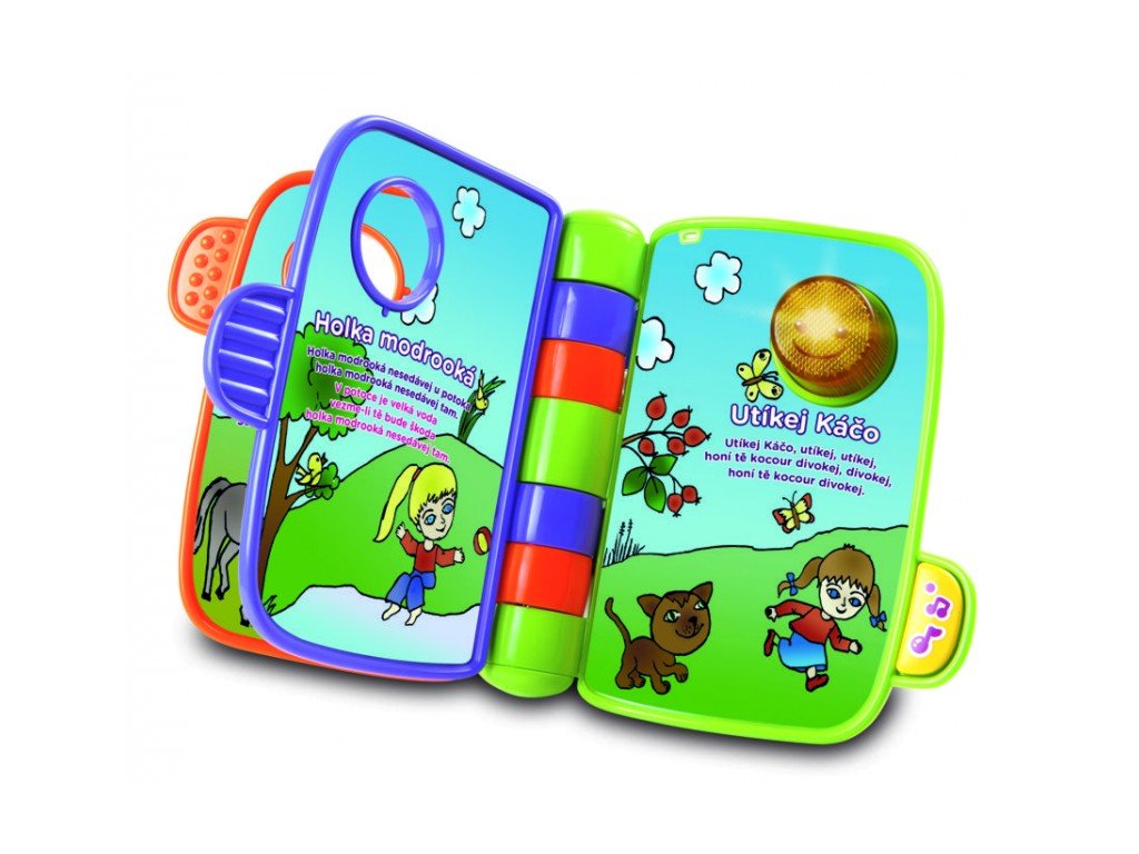 VTech Moje první zpívánková knížka je nádherná kniha, která obsahuje čtyři známé dětské písničky: Já mám koně, Malé kotě, Holka modrooká a Utíkej Káčo. Snadným otáčením stránek si vaše dítě snadno vybírá, pro něj, tu nejzajímavější melodii a písničku. Zkuste zapojit vaši fantazii a vyprávějte vašemu dítěti ke každému obrázku svůj příběh. Pomůže mu to poznávat krásy mateřského jazyka přímo od svých nejbližších. Pouze v českém jazyce.