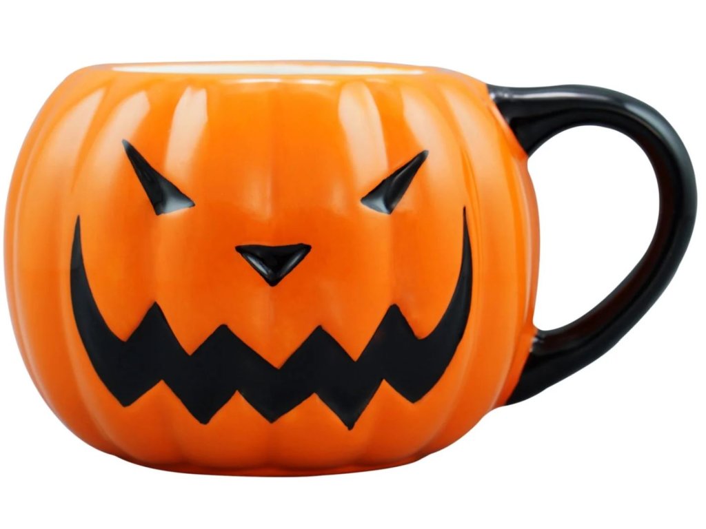 3D hrnek vyvedený v motivu halloweenské dýně. Hrníček je balen v dárkové tištěné krabičce.