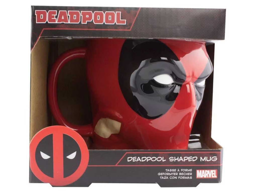 Oficiální hrnek z katalogu produktů a sběratelského zboží s licencí superhrdiny Deadpool od společnosti Marvel.