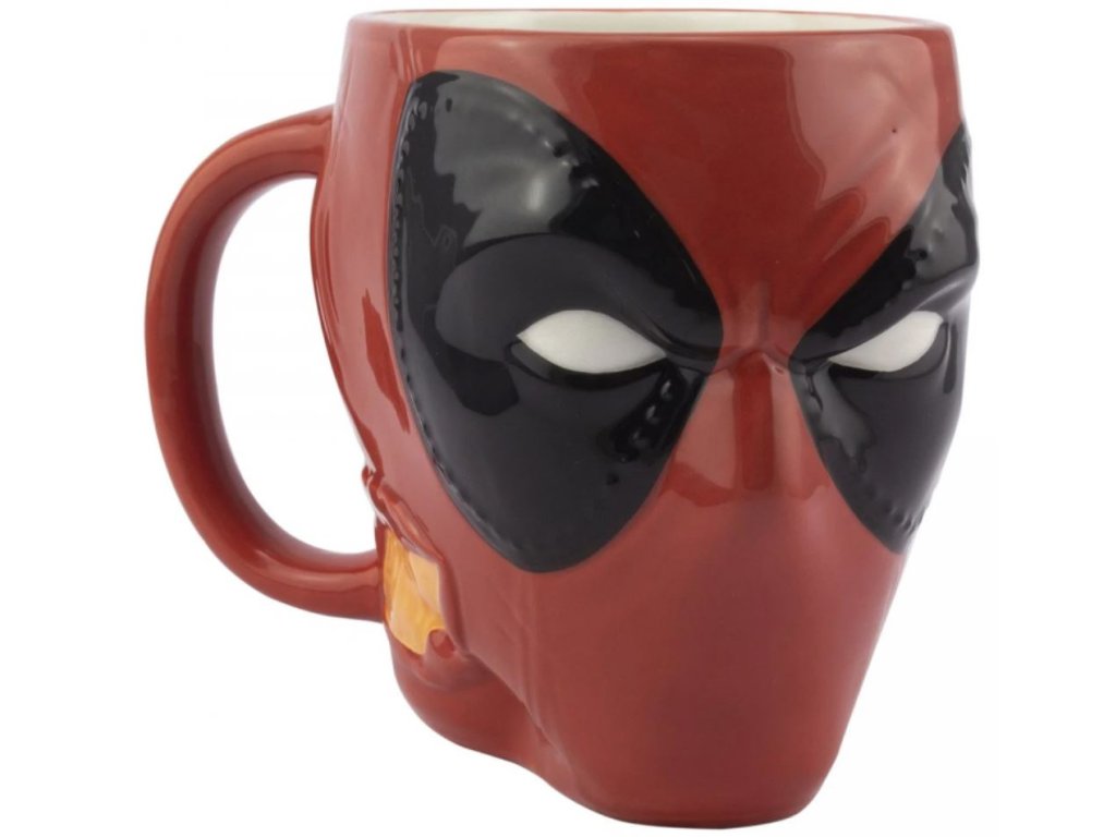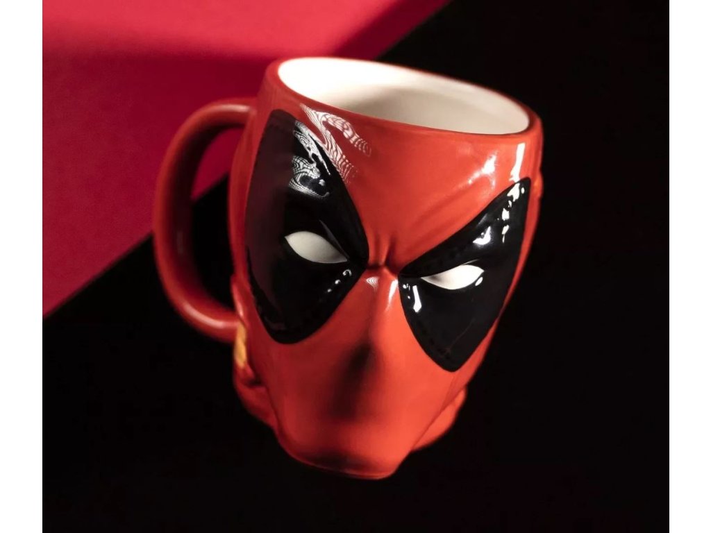 Červený 3D kvalitní hrnek inspirovaný hlavoou postavy Deadpoola ze stejnojmenného filmu od společnosti Marvel.