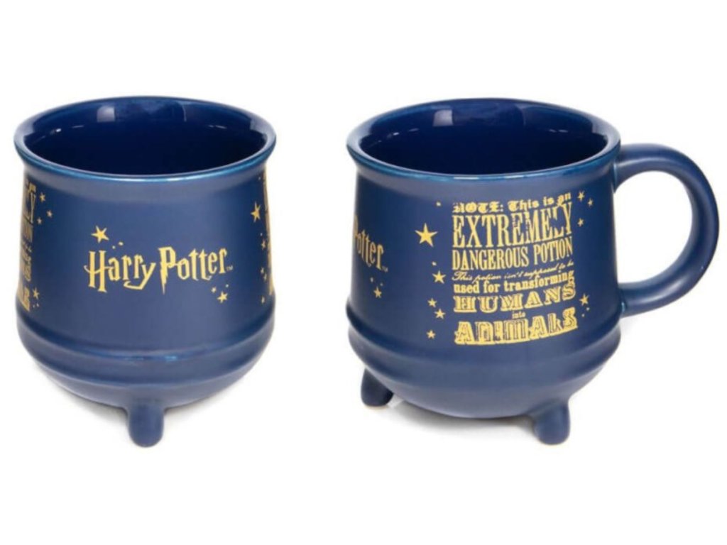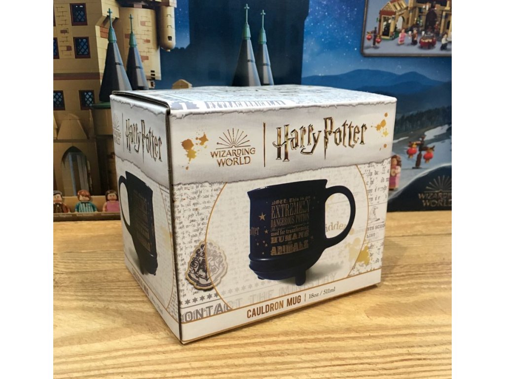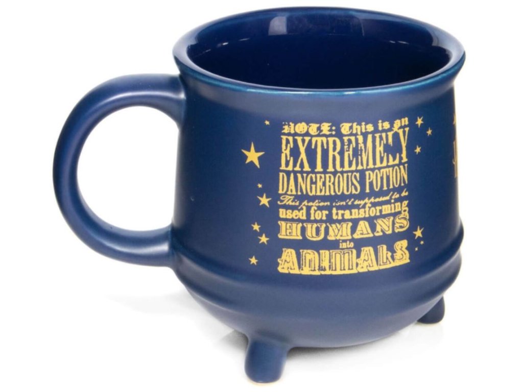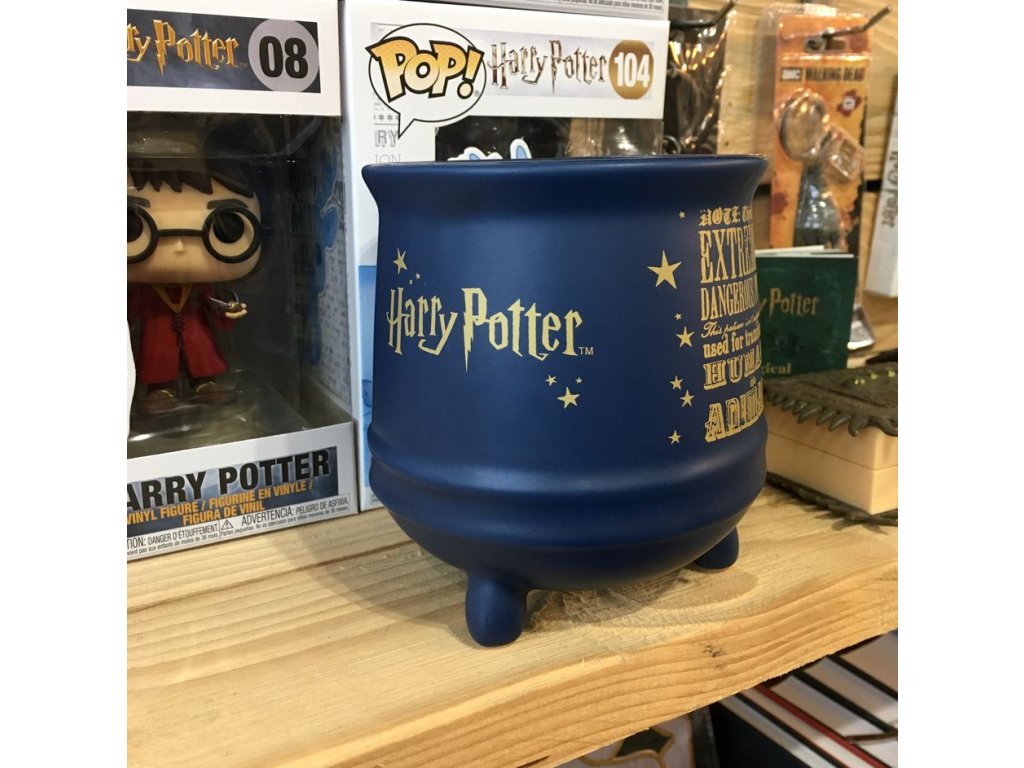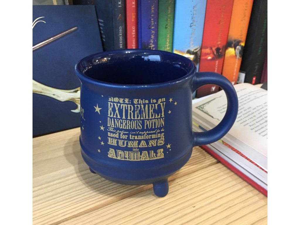 Tmavě modrý dekorativní keramický hrnek ve tvaru kotlíku s nápisy Extrémně nebezpečných lektvarů (Extremely dangerous potions) z Harryho Pottera. Hrnek je vhodný pro všechny kouzelníky, kteří si chtějí udělat kakao či jiný lektvar.