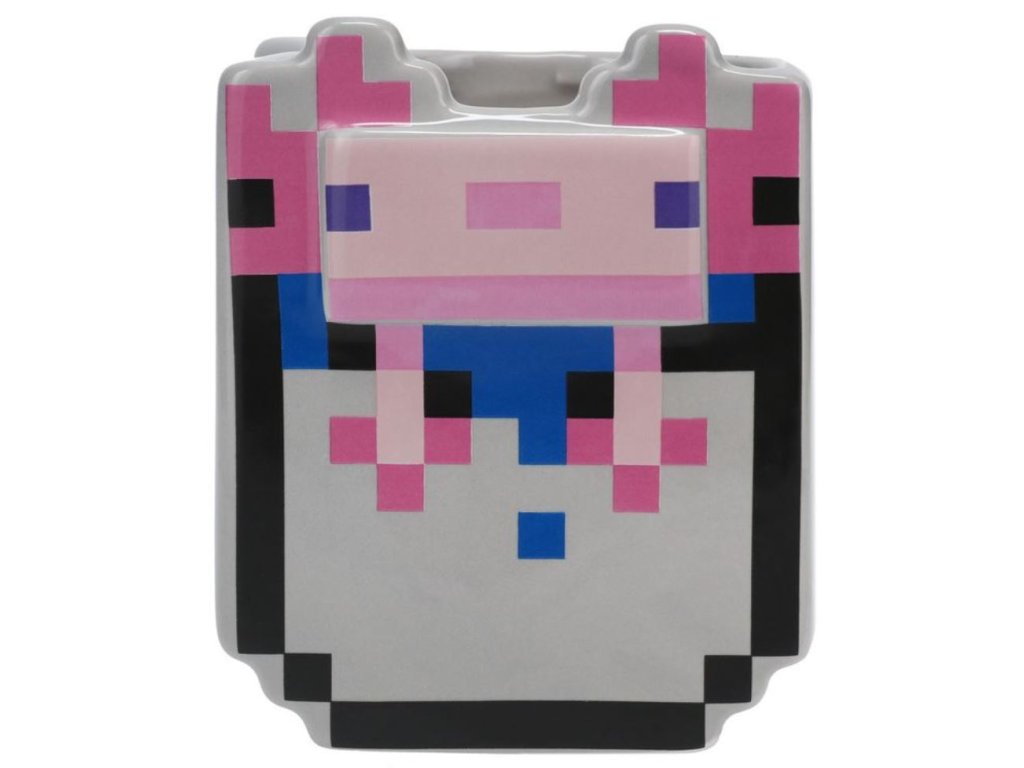 Užijte si rychlou přestávku na pití mezi herními sezeními s tímto hrnkem s grafikou vodního dráčka Axolotla ze hry Minecraft. Keramický hrnek má tvar kbelíku obsahujícího axolotla, stejně jako předmět, který lze získat z Minecraftu. Je ideální pro uložení vašeho oblíbeného nápoje. Hrnek bude úžasným doplňkem vaší sbírky hrníčků.