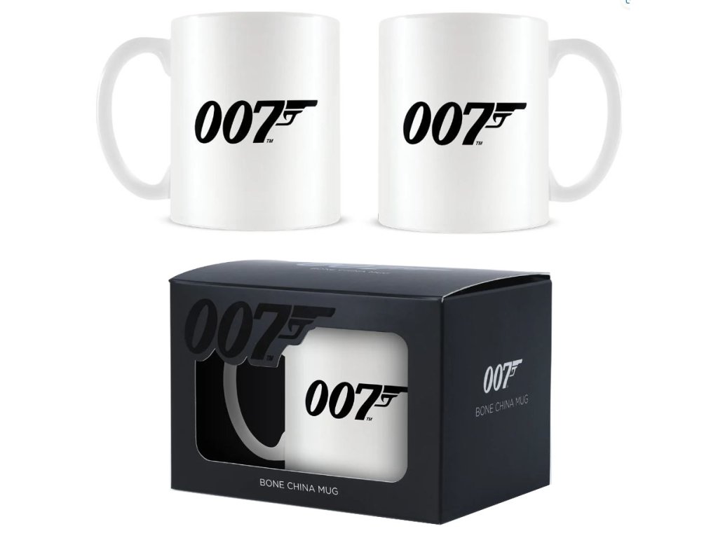 Oficiální produkt - keramický hrnek a doplňkové zboží z katalogu výrobků s logem, fotografiemi a grafikou filmové série James Bond.
