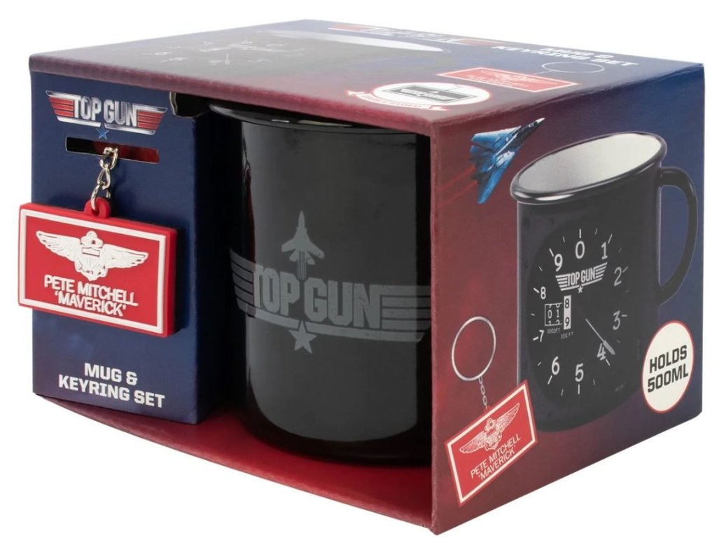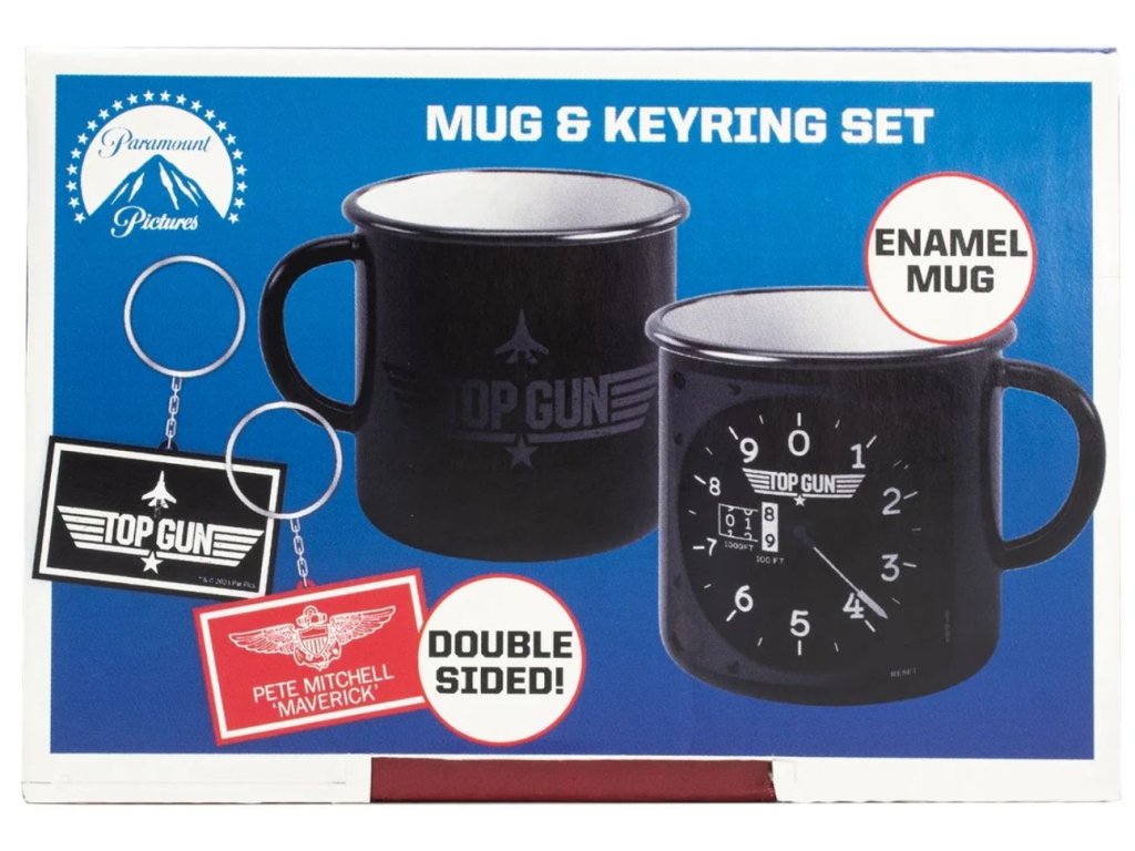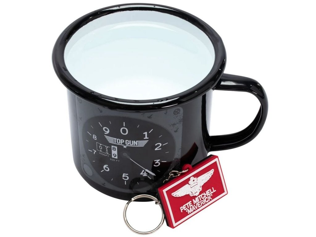 Dárkový set inspirovaný filmovou sérií Top Gun. Odolný a stylový hrnek se sběratelskou klíčenkou.