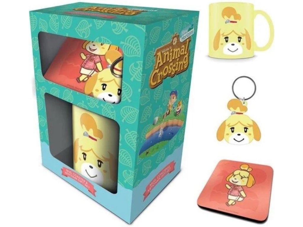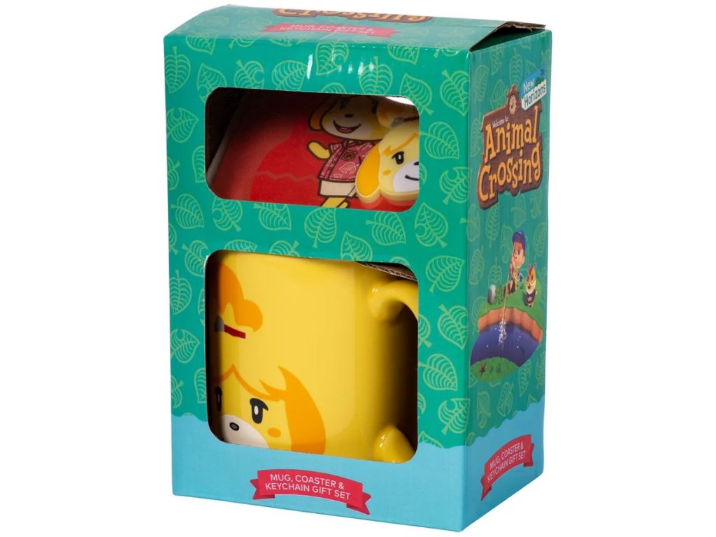Dárkový set 3 předmětů, inspirovaný populární hrou Animal Crossing. Set hrníčku, podtácku a klíčenky je dodávaný v dárkové krabičce se stejným designem, a proto je celá sada vhodná jako dárek pro každého menšího i většího fanouška.