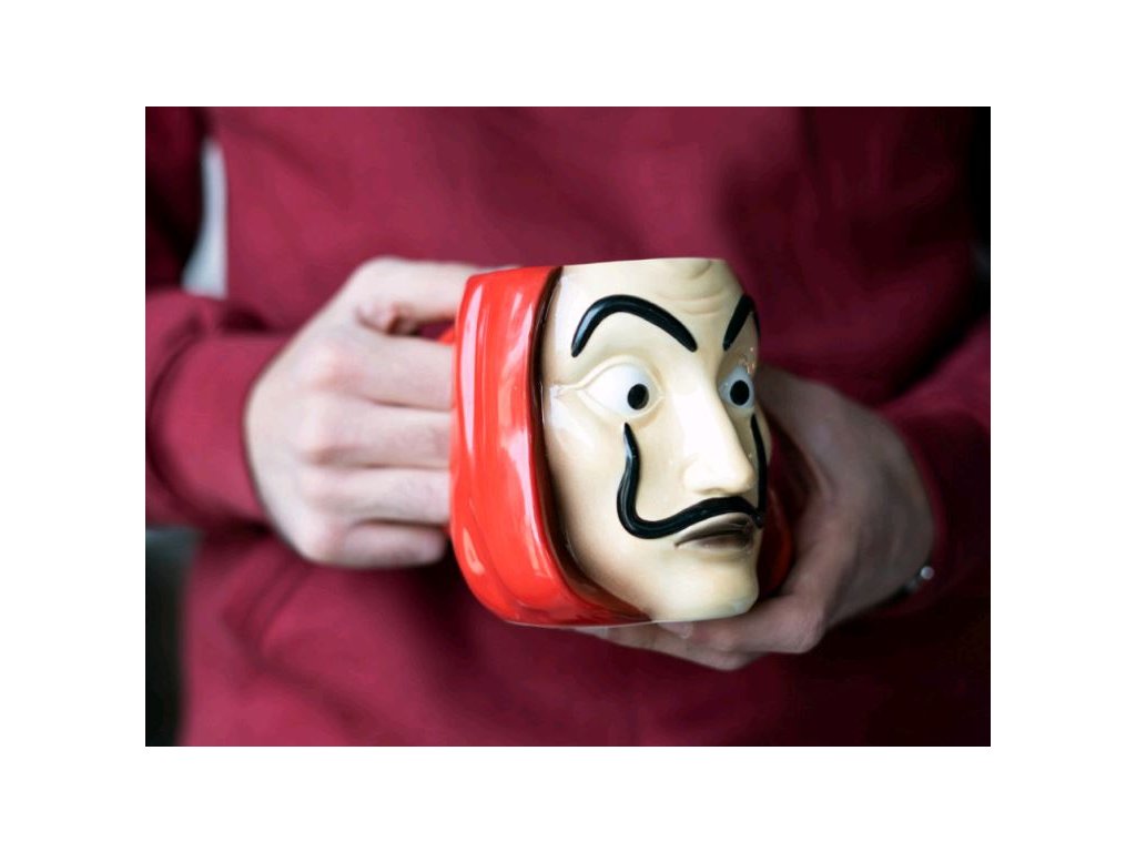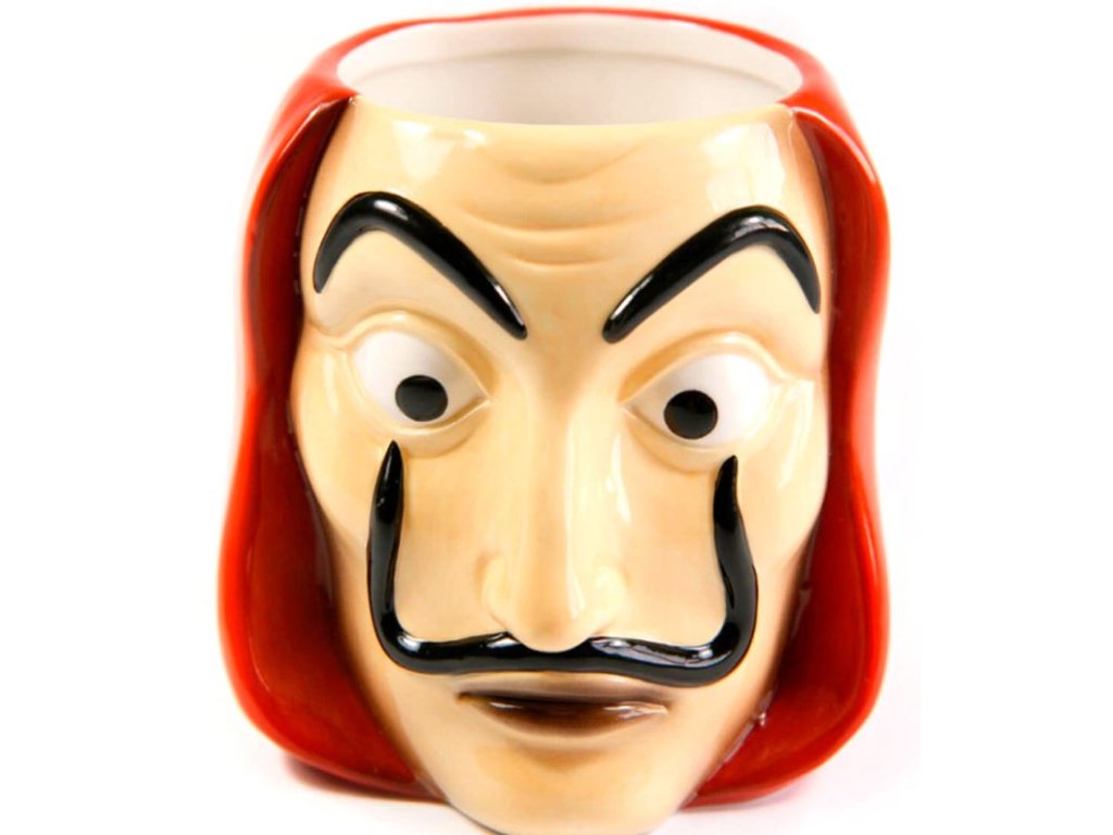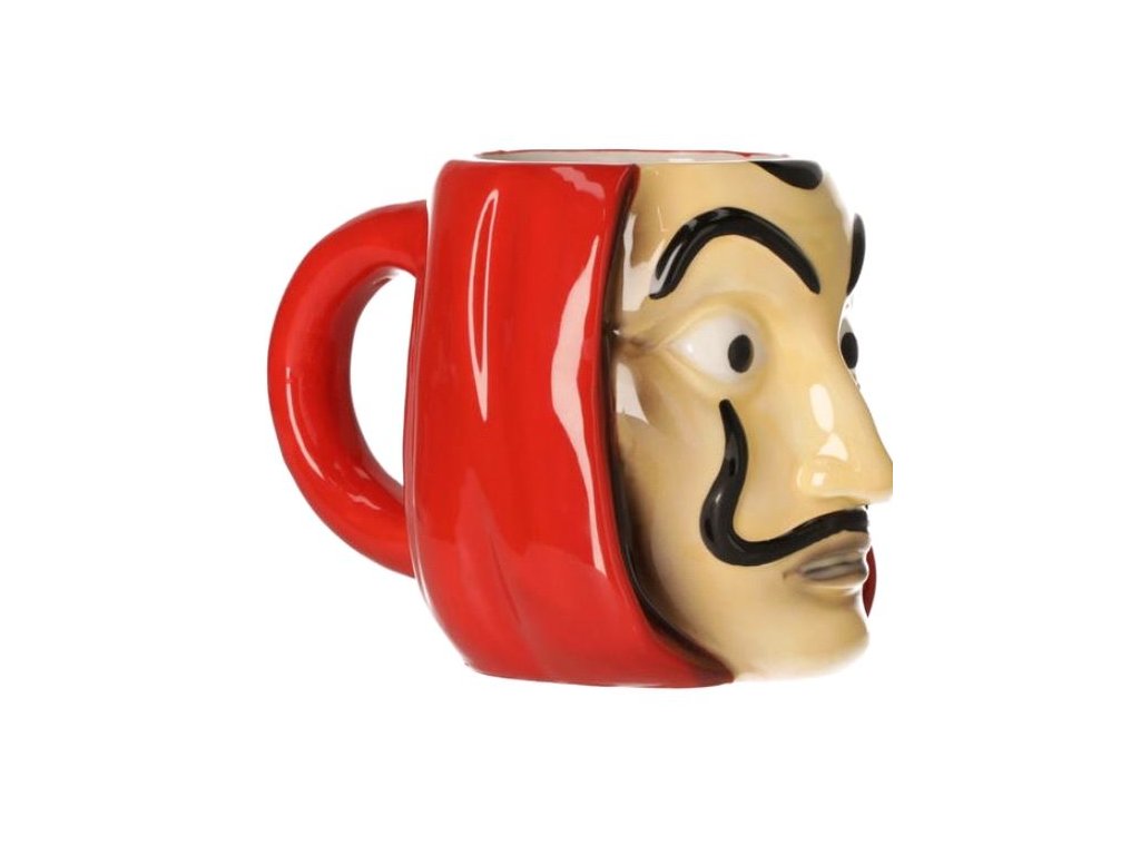 Oficiální hrnek a sběratelské zboží z katalogu produktů s licencí španělského seriálu La Casa De Papel od společnosti Netflix.