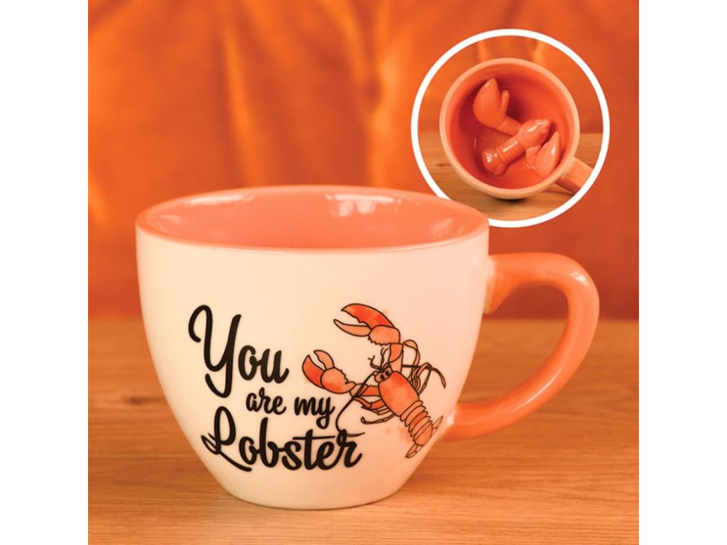 Keramický hrnek s grafikou humra a nápisem: You are my lobster. Na dně hrnku je vystupující humr v 3D provedení.