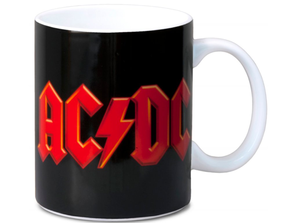 Keramický glazovaný hrnek s barevným potiskem loga slavné hard-rockové skupiny AC/DC.