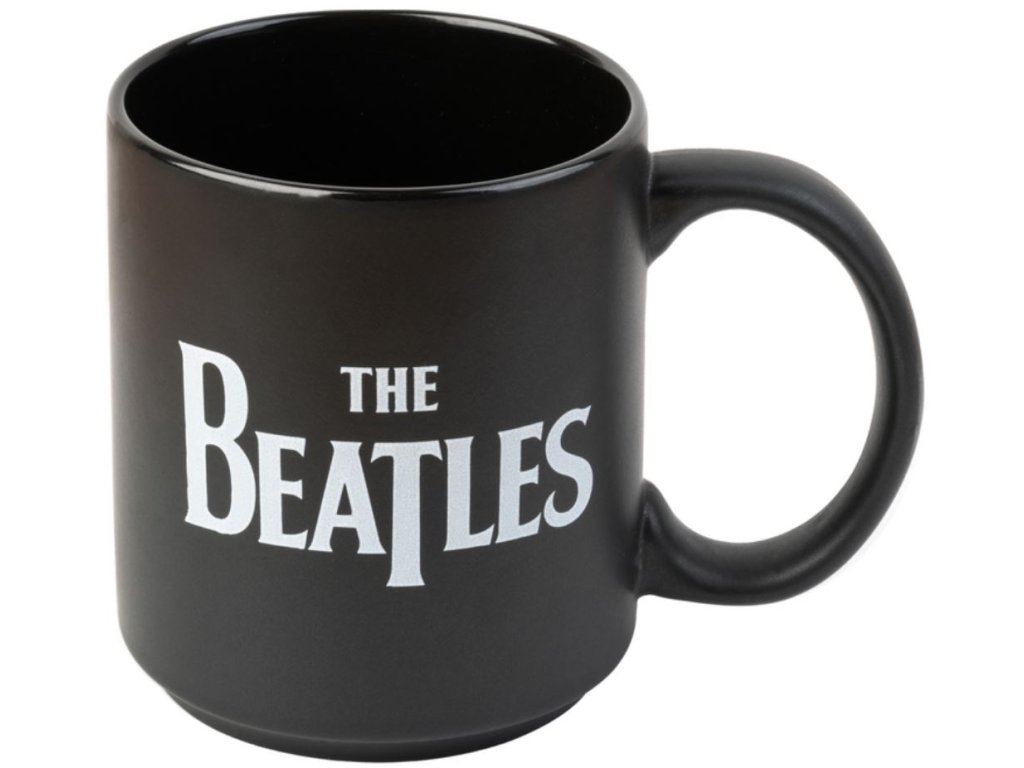 Černý hrnek s logem kapely The Beatles. Hrnek je vhodným dárkem a doplňkem pro každého menšího i většího hudebního fanouška.