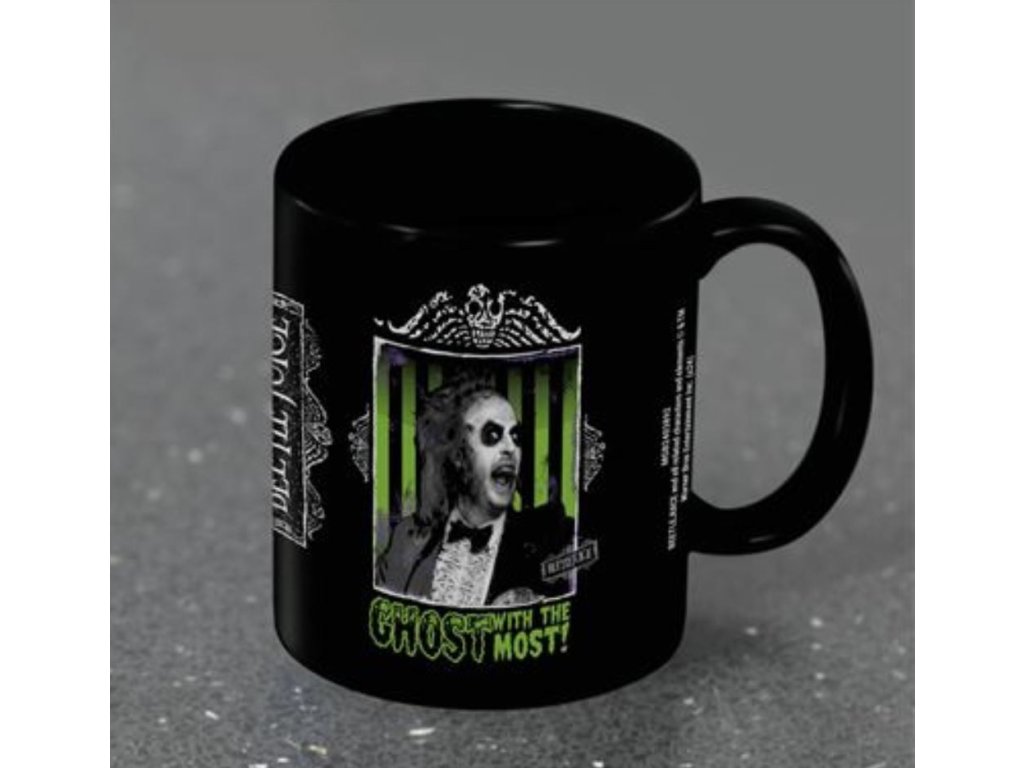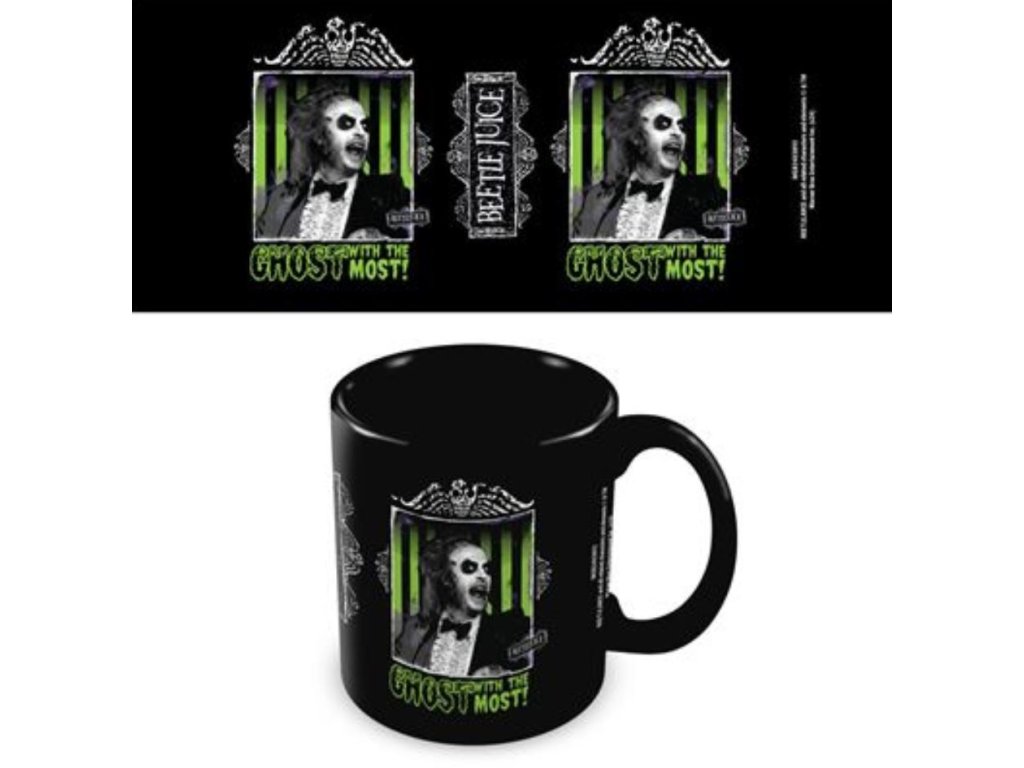 Černý keramický hrnek s logem a grafikou ducha s mocí, jinými slovy Beetlejuice. Hrnek je vhodným dárkem pro všechny menší i větší fanoušky této oblíbené postavy.