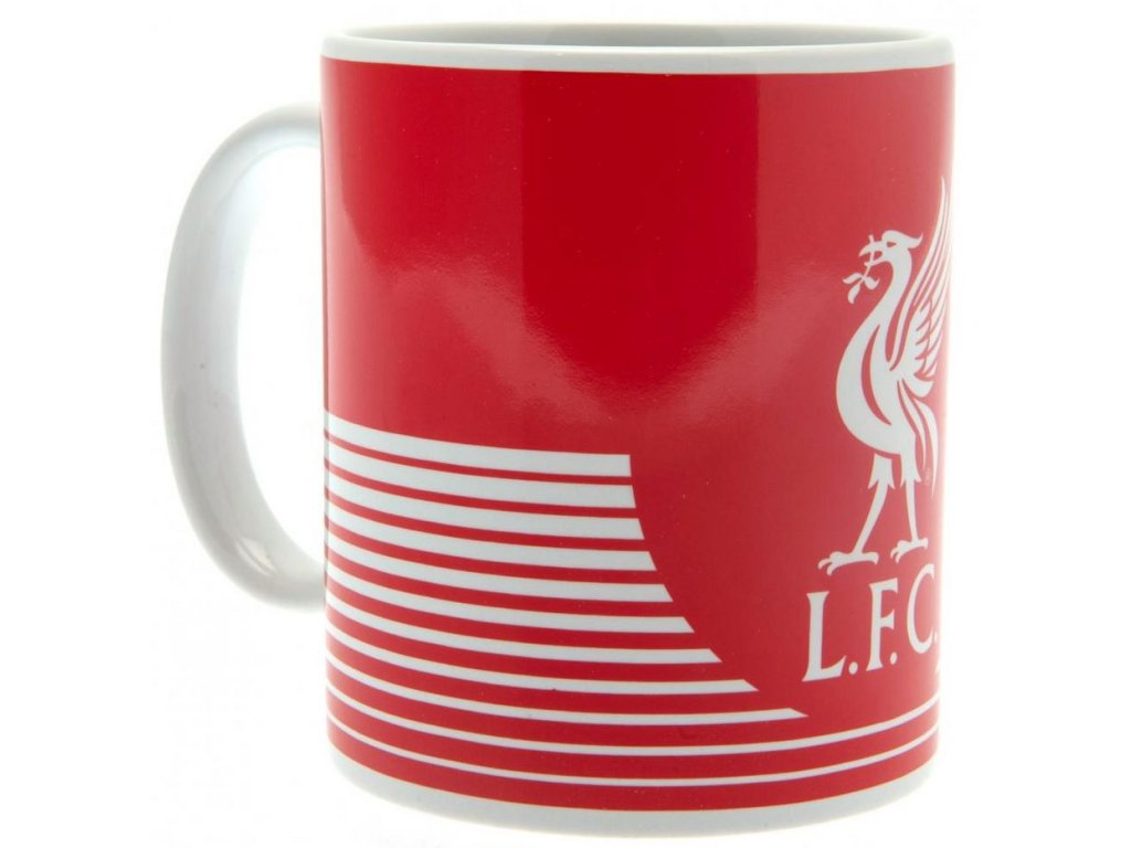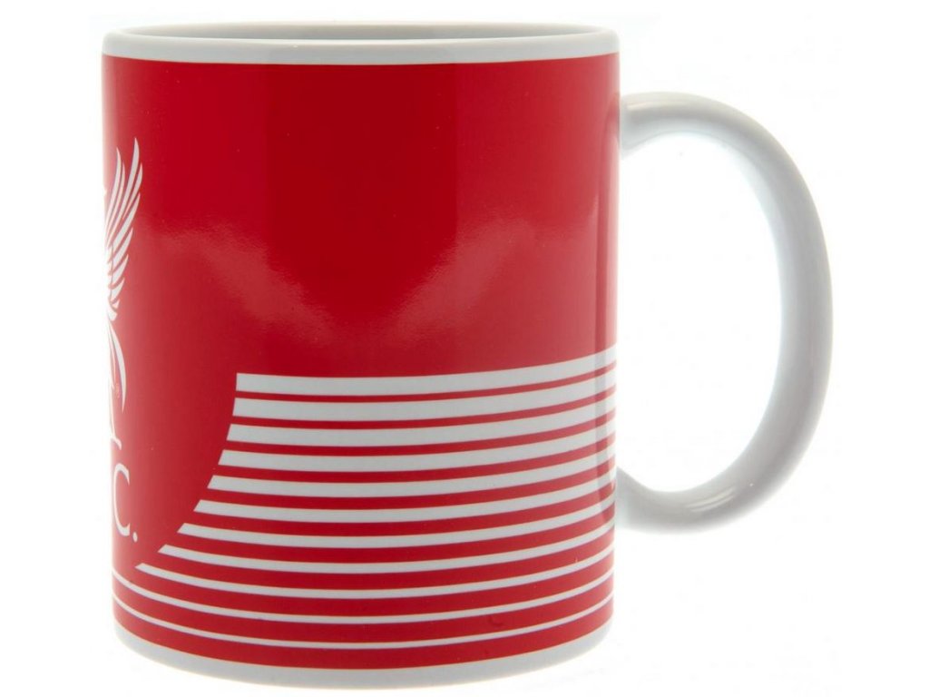 Oficiální hrnek a doplňkové zboží z katalogu produktů se znakem a grafikou v klubových barvách slavného britského fotbalového klubu Liverpool FC.
