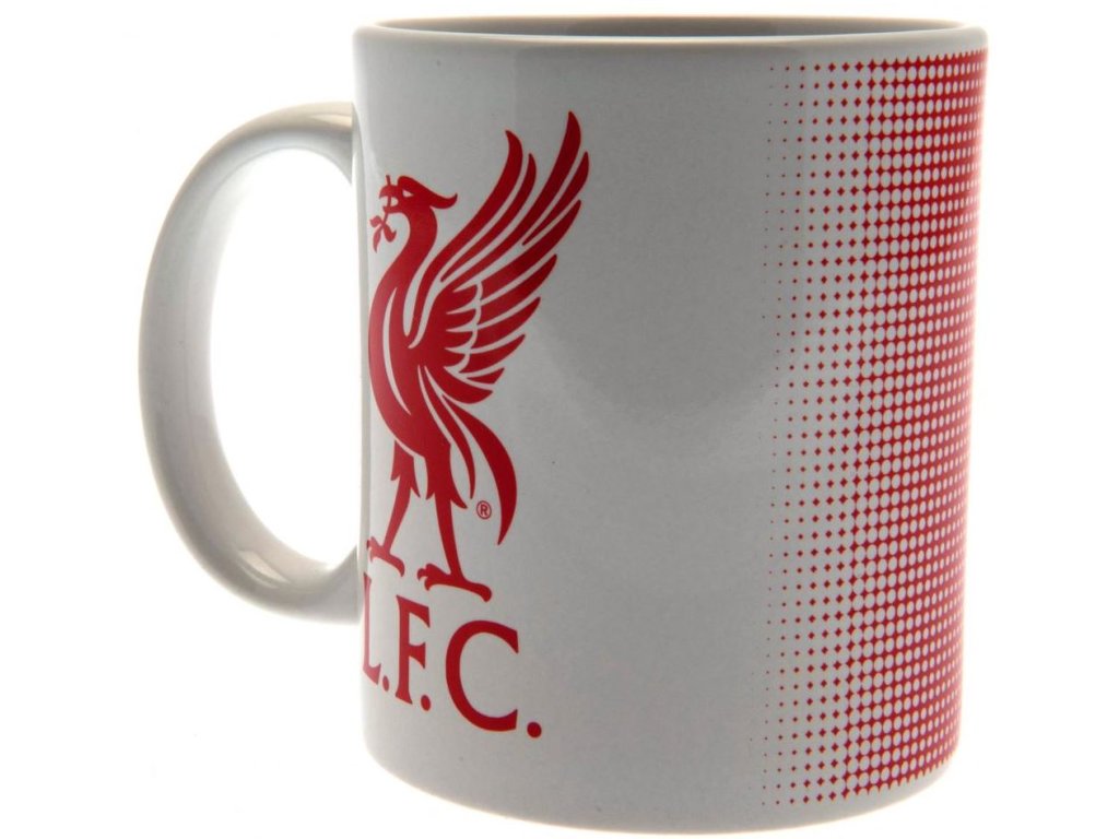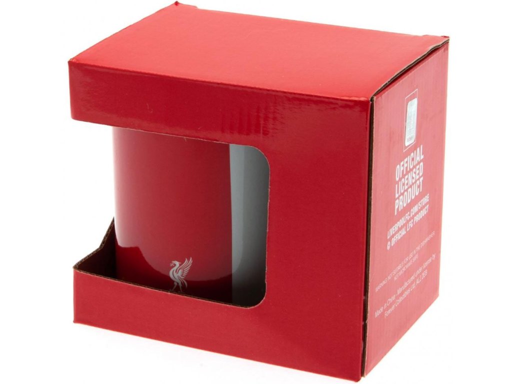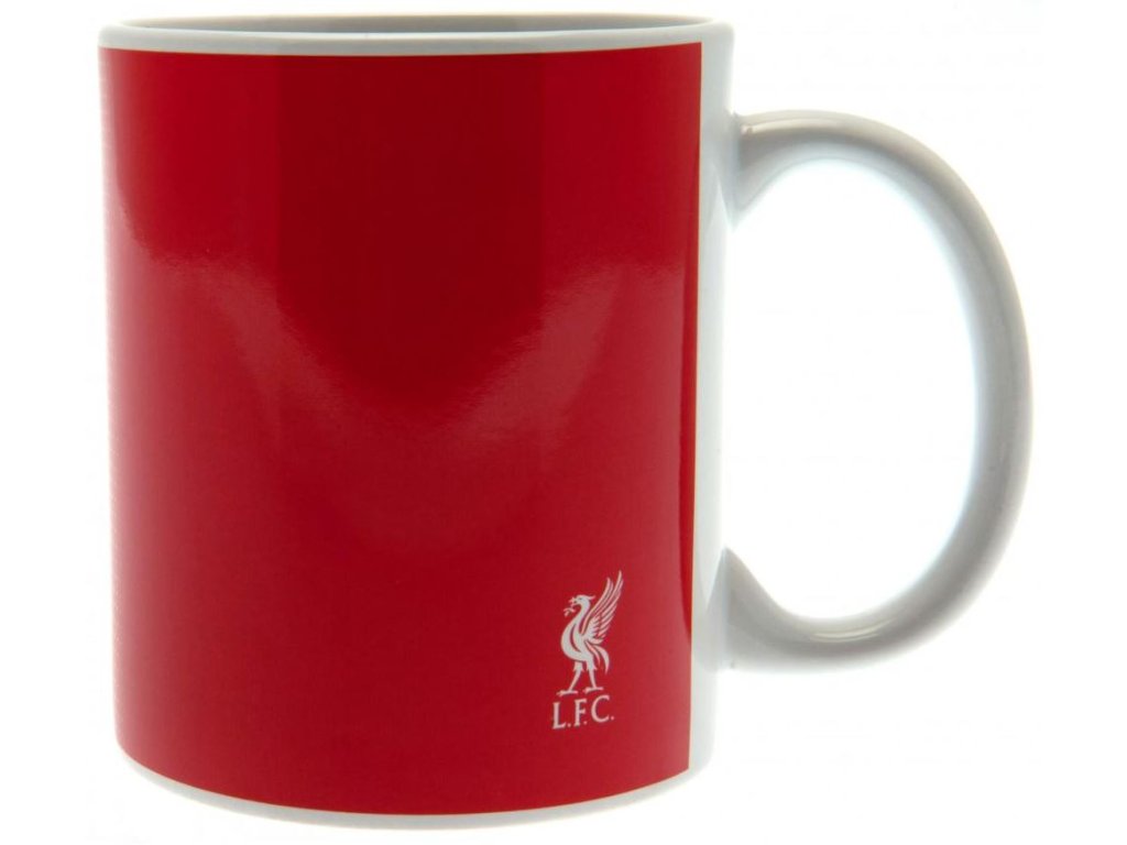 Oficiální hrnek a doplňkové zboží z katalogu produktů se znakem a grafikou v klubových barvách slavného britského fotbalového klubu Liverpool FC.