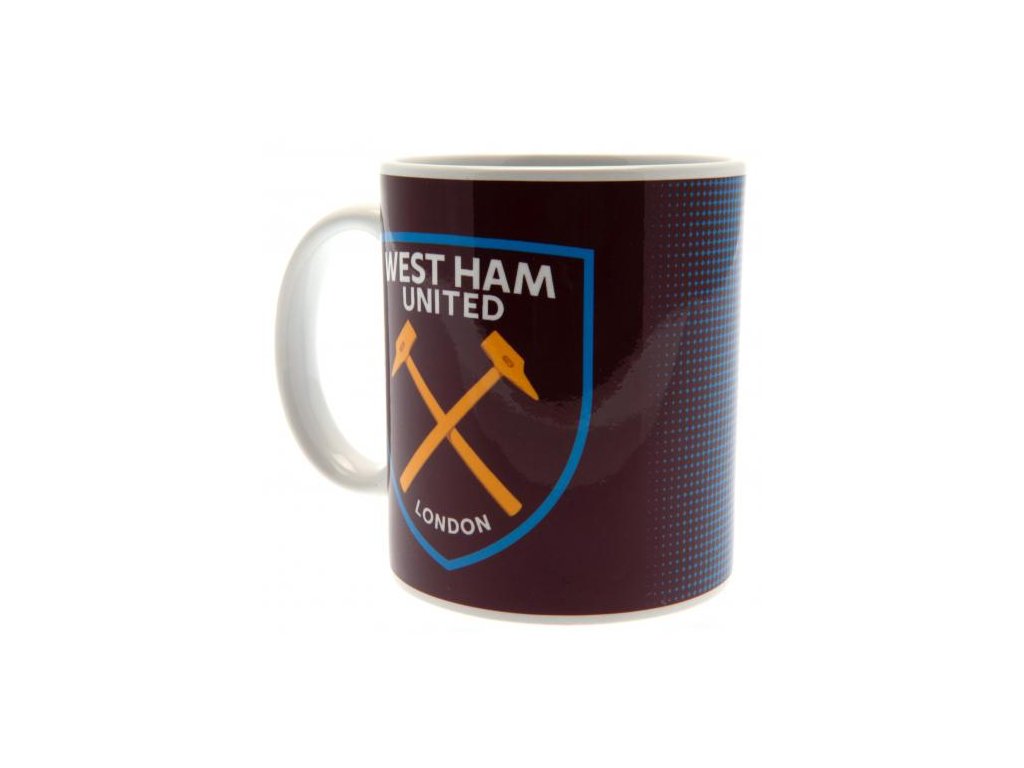 Keramický hrnek v barvách a se znakem slavného britského fotbalového klubu West Ham United FC. Zabaleno v papírové - kartónové krabičce.
