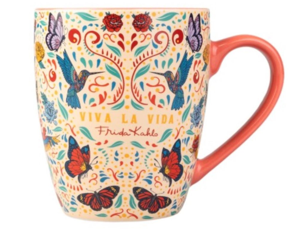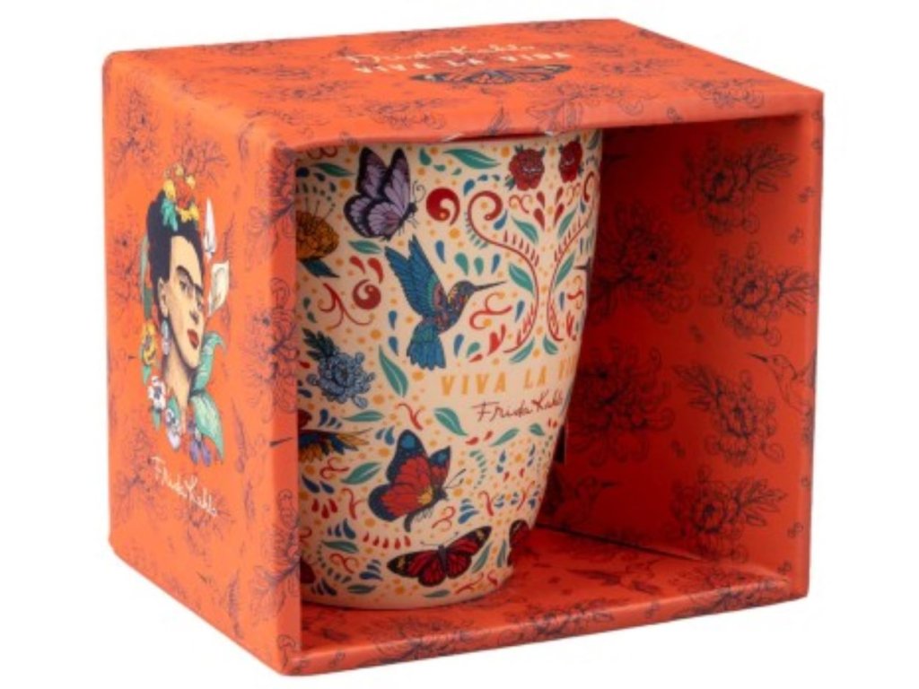 Oficiální produkt - hrnek z katalogu zboží s licencí mexické malířky jménem Frida Kahlo.