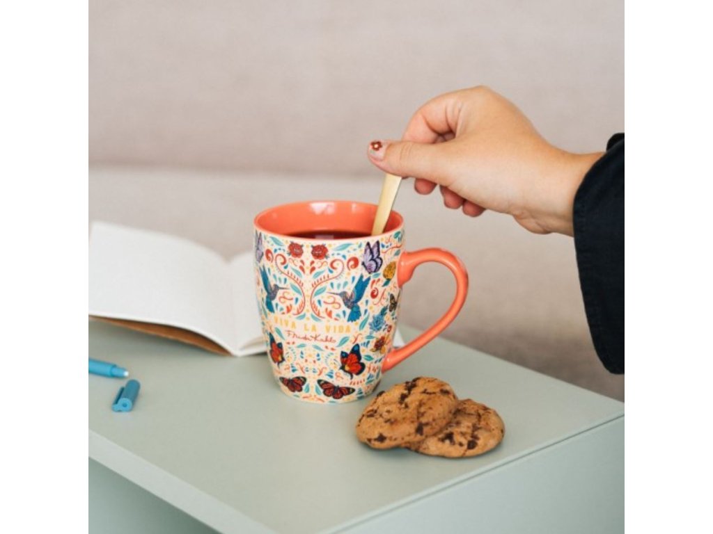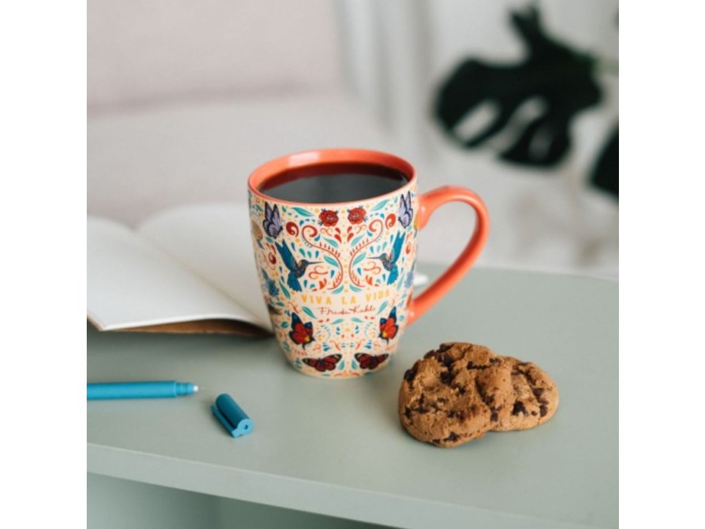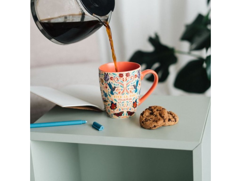 Keramický hrnek oranžové barvy vyvedený v grafice maleb od mexické malířky Fridy Kahlo. Tento roztomilý hrnek je nejen skvělým dárkem pro fanoušky této mexické malířky, ale i pro všechny milovníky umění.