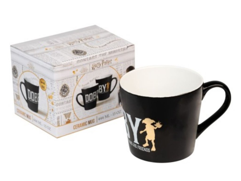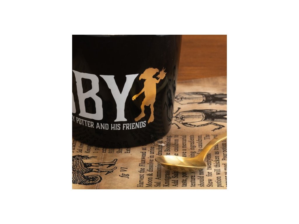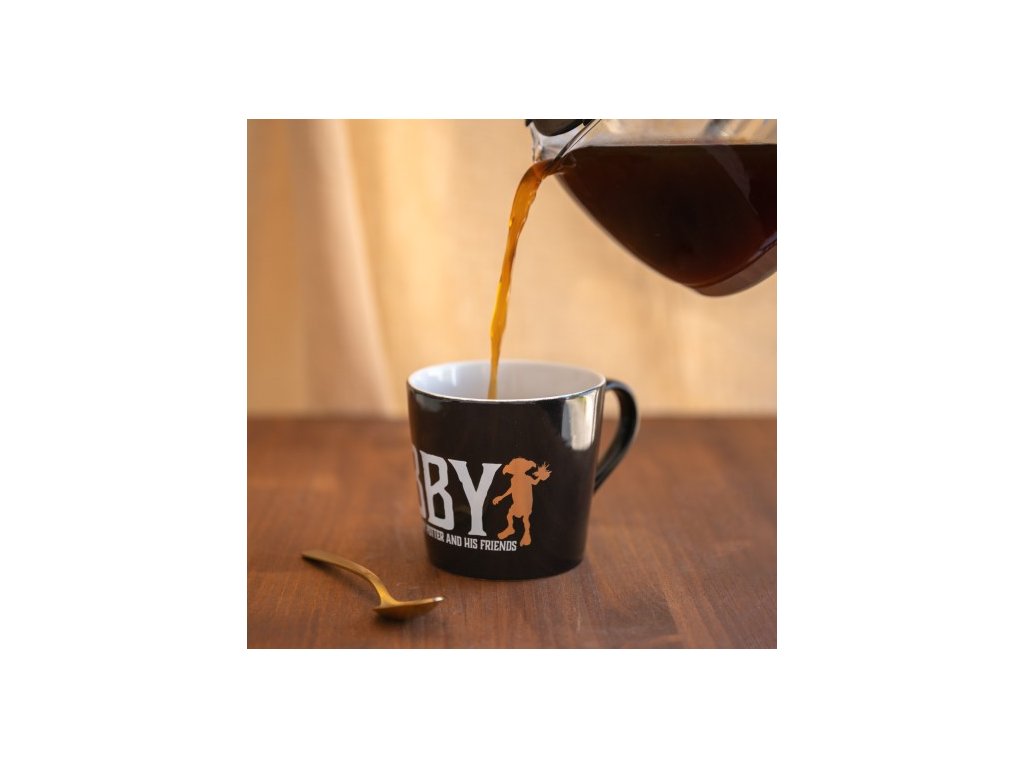 Hrnek vyvedený v černé barvě s grafikou domácího skřítka Dobbyho, kterého můžete znát ze ságy Harryho Pottera. Hrníček je balen a dodáván v papírové krabičce s designem ságy Harryho Pottera.