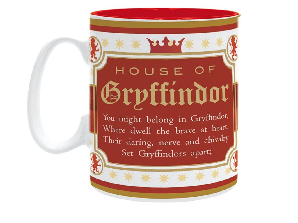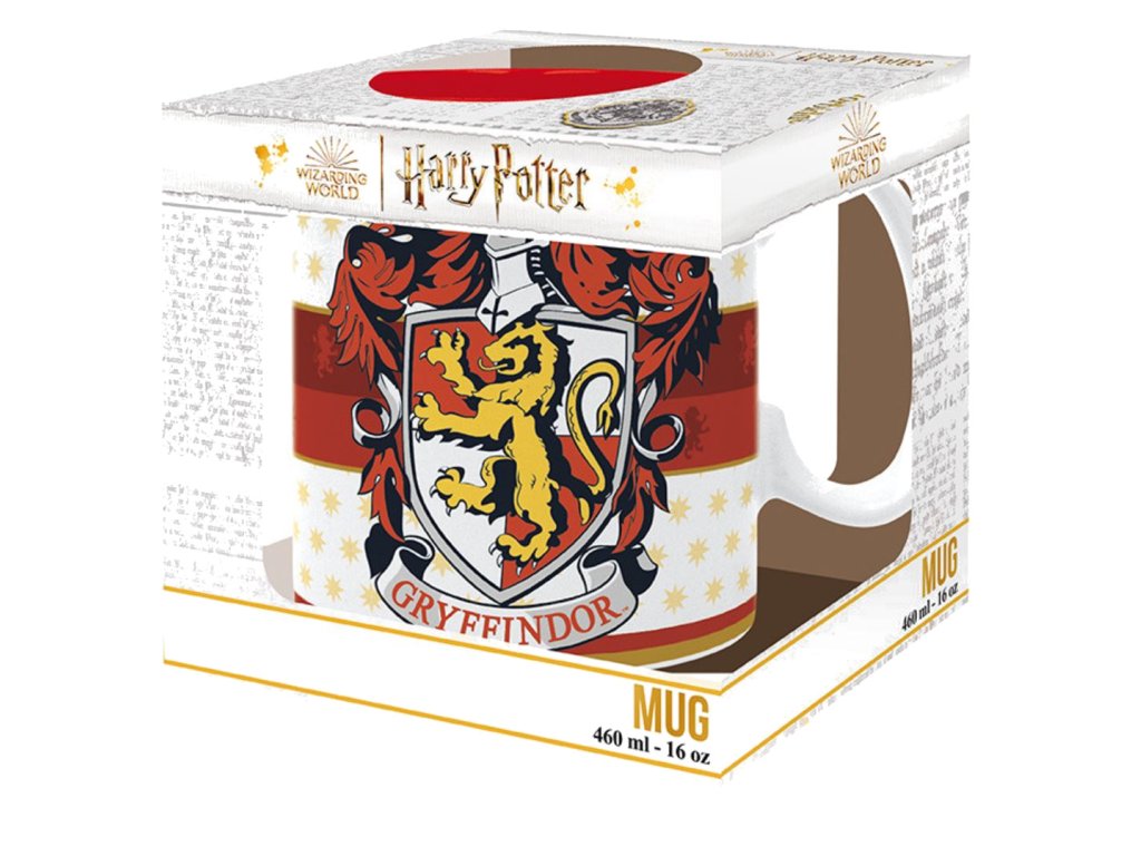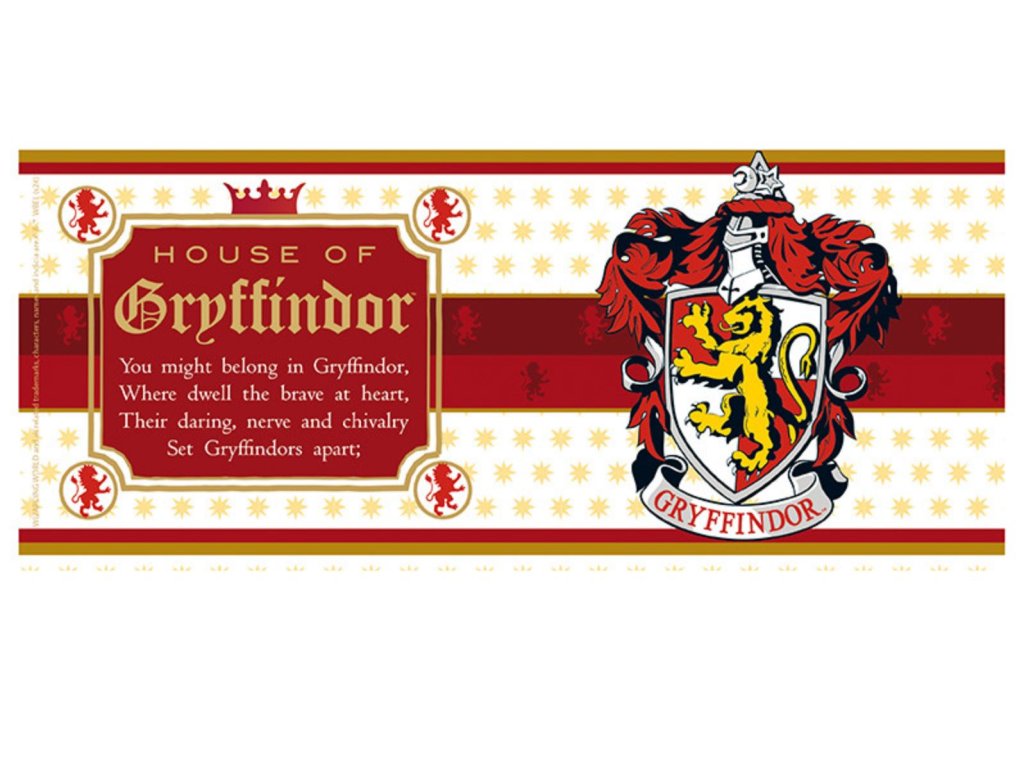 V hrdém erbu nebelvírského rodu je majestátní lev, symbol statečnosti a odvahy, a najdete ho na tomto vynikajícím nebelvírském hrnku Harry Potter. Tento nebelvírský hrnek je skutečným pokladem pro každého fanouška Harryho Pottera. Hrnek je vyveden v charakteristických barvách nebelvírského domu: šarlatové a jasně zlaté. Tento hrnek velmi graficky hezky zpracovaný a zamiluje se do něj každý větší i menší fanoušek Harryho Pottera.