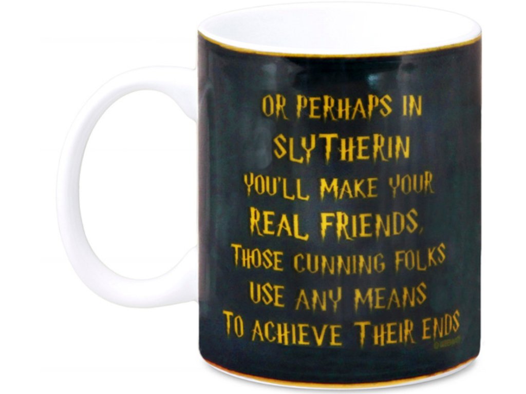Oficiální hrnek a doplňkové zboží z katalogu produktů s logem, fotografiemi a grafikou filmové ságy o Harrym Potterovi.