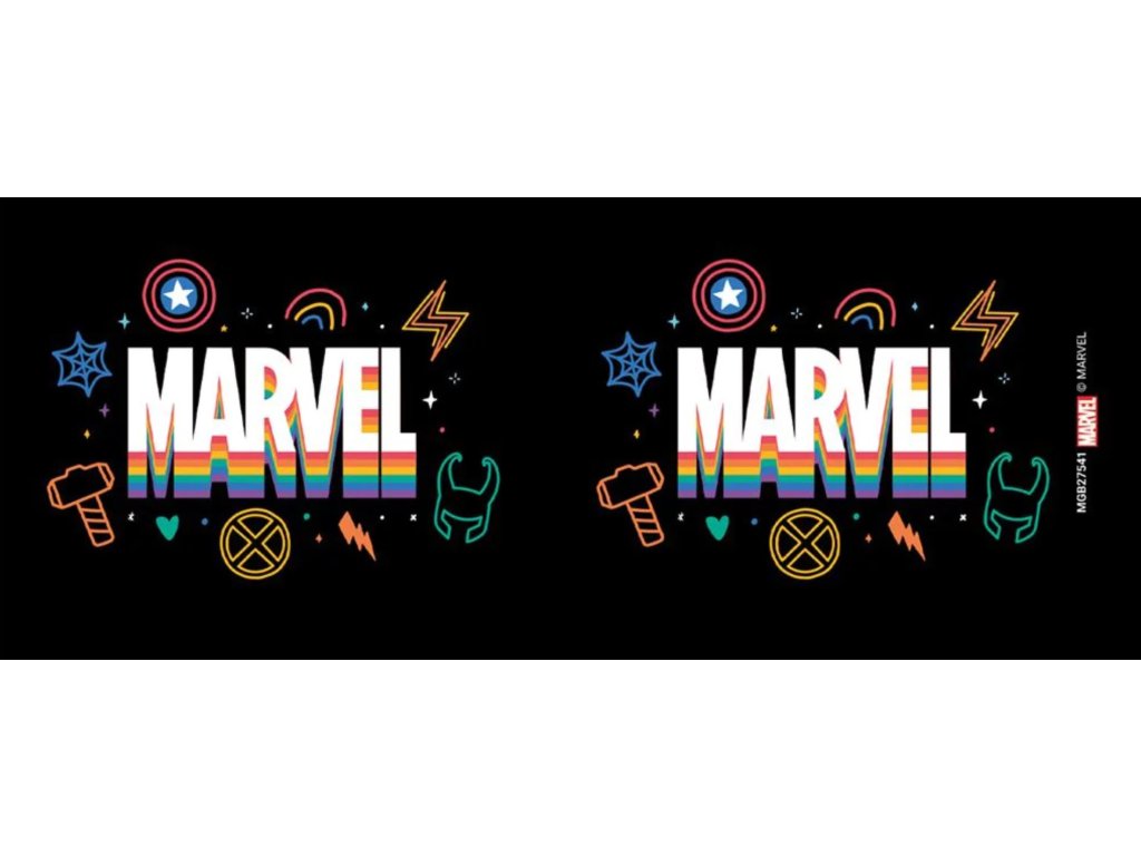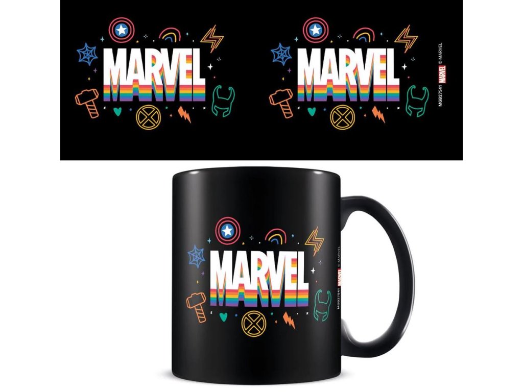 Keramický hrnek s grafikou duhového loga a symbolů vydavatelství Marvel. Hrnek je vhodný pro každého menšího i většího superhrdinu.