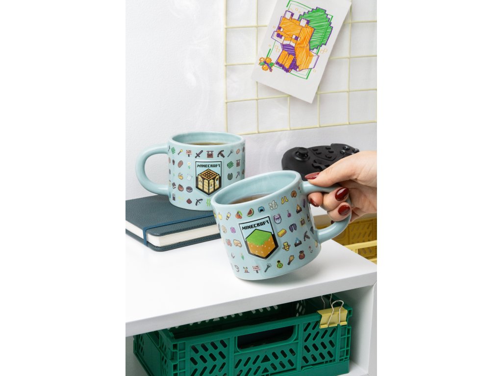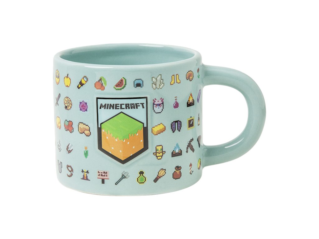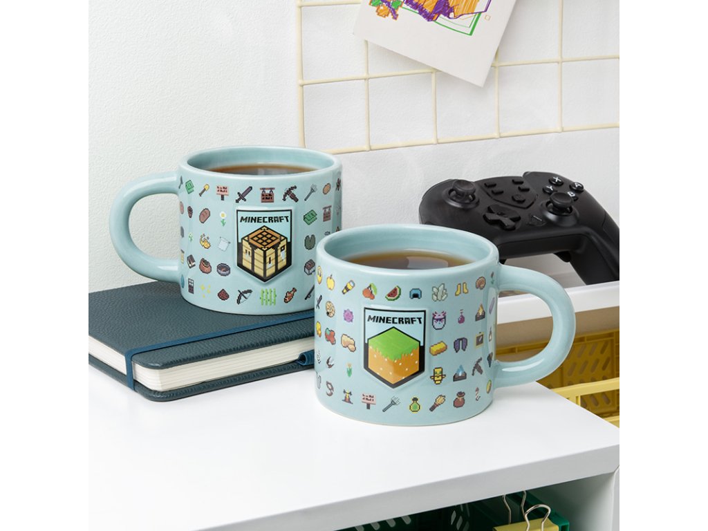 Oficiální produkt - 3D keramický hrnek katalogu dárkových, sběratelských, upomínkových produktů s logem a grafikou oblíbené videohry Minecraft.