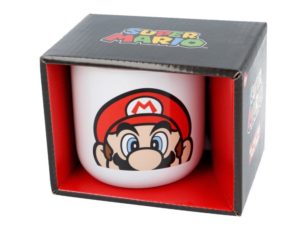Bílý keramický hrnek s grafikou hlavní postavy Maria z populární počítačové hry Super Mario. Hrnek je vhodný pro všechny menší i větší fanoušky.