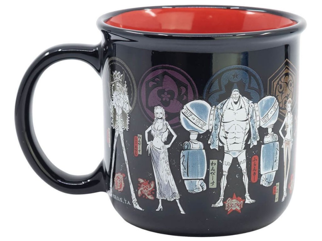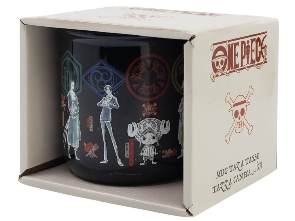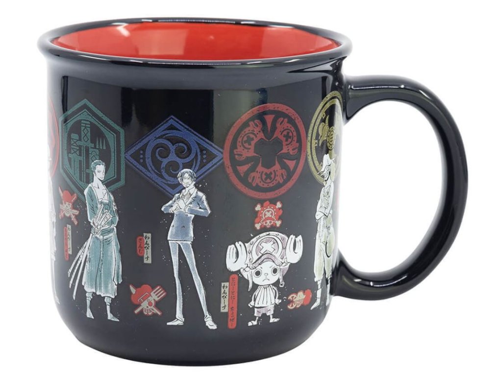 Černý keramický hrnek s grafikou postav japonské mangy One Piece, kterou vytvořil mangaka Eličiró Oda. Příběh vypráví o chlapci jménem Monkey D. Luffy, který má velký sen, a to stát se novým pirátským králem. Hrnek je vhodný pro všechny menší i větší piráty.