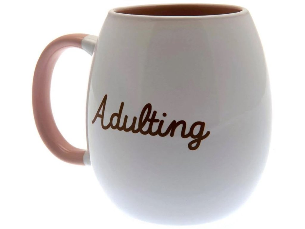 Růžový keramický hrnek s motivem kočky Pusheen Adulting.