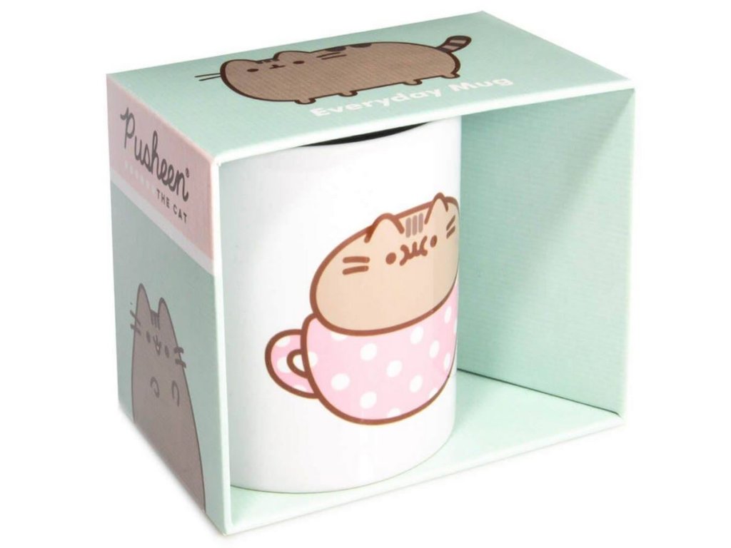 Oficiální produkt - keramický hrnek a doplňkové zboží z katalogu výrobků s logem, grafikou a licencí fiktivní animované kočky Pusheen.