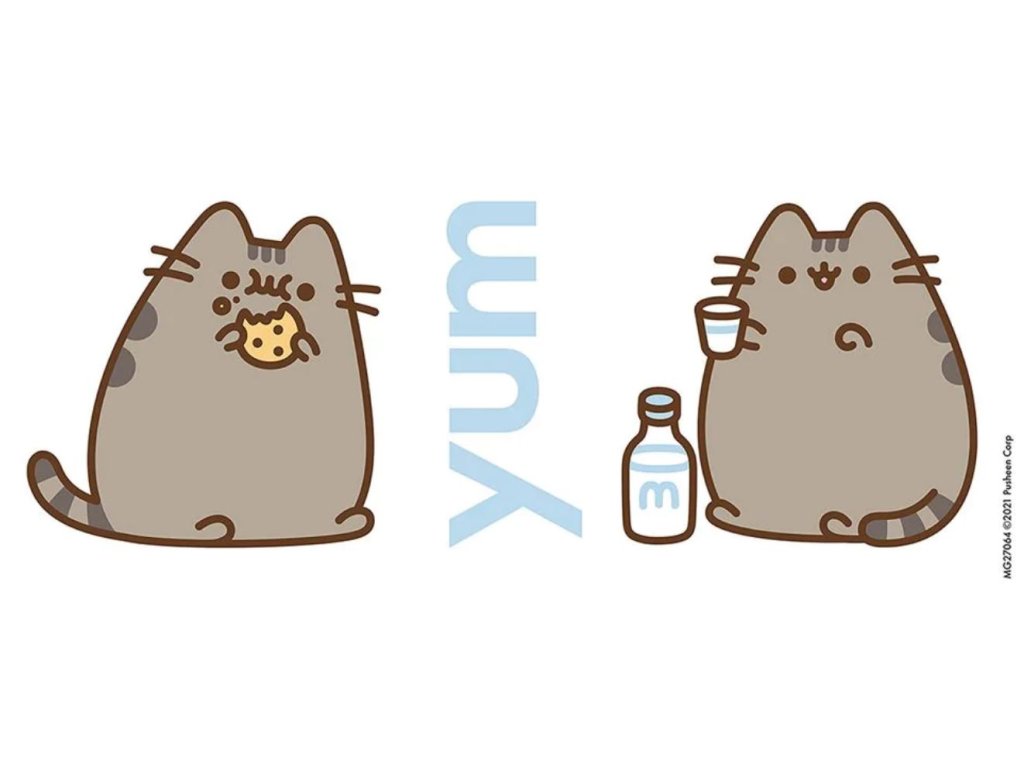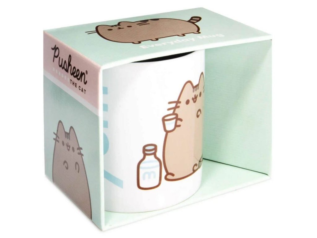 Oficiální produkt - keramický hrnek a doplňkové zboží z katalogu produktů s logem, grafikou a fotografií fiktivní animované kočky Pusheen.
