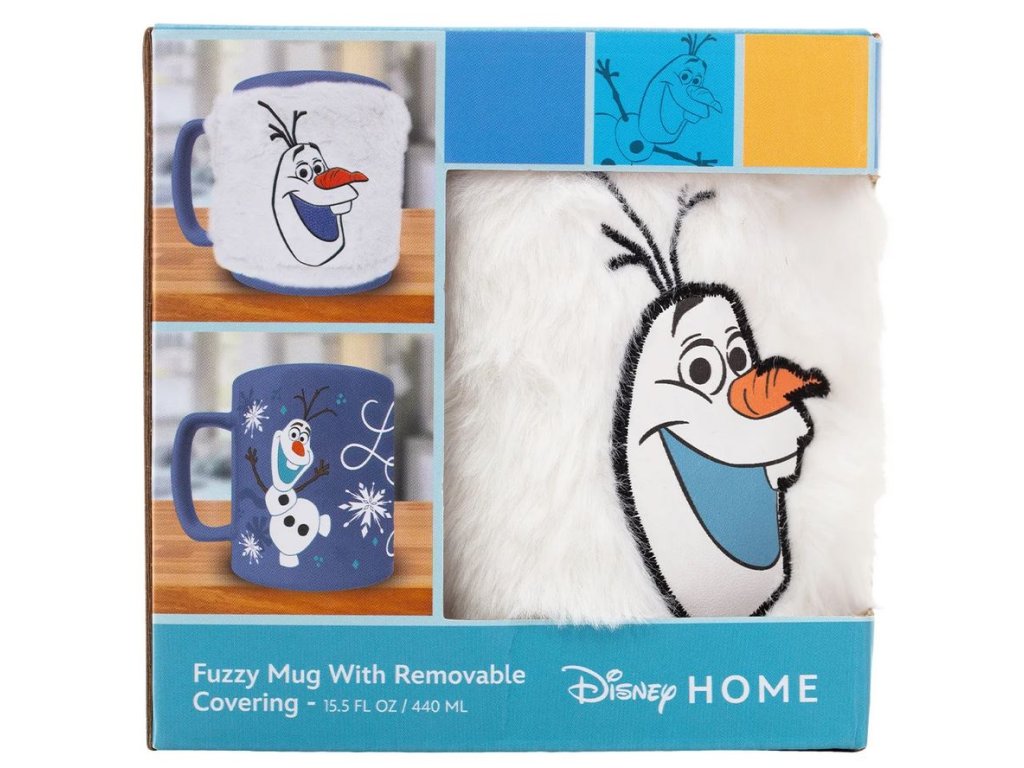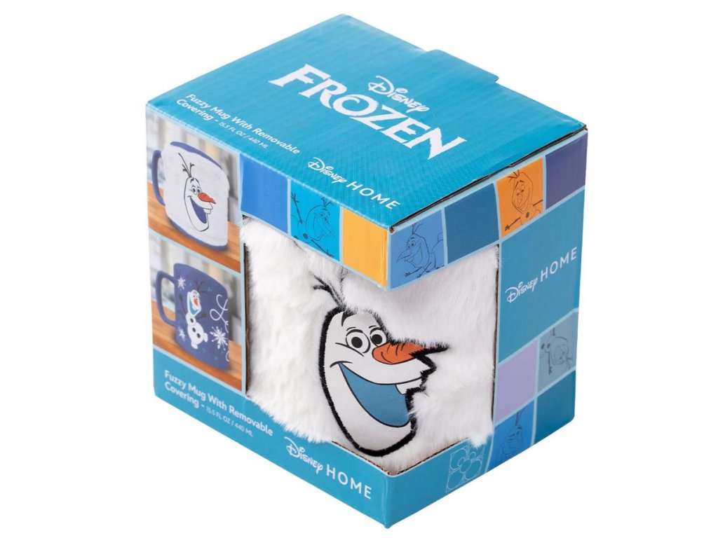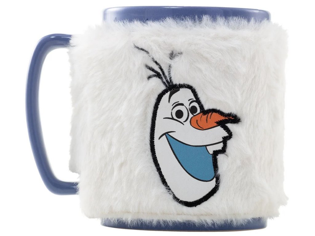 Oficiální produkt - keramický hrnek s chlupatým odnímatelným obalem z katalogu zboží s grafikou a licencí sněhuláka z dílny Walta Disneyho z pohádky Frozen (Ledové království).