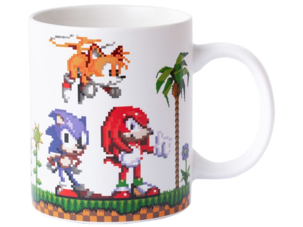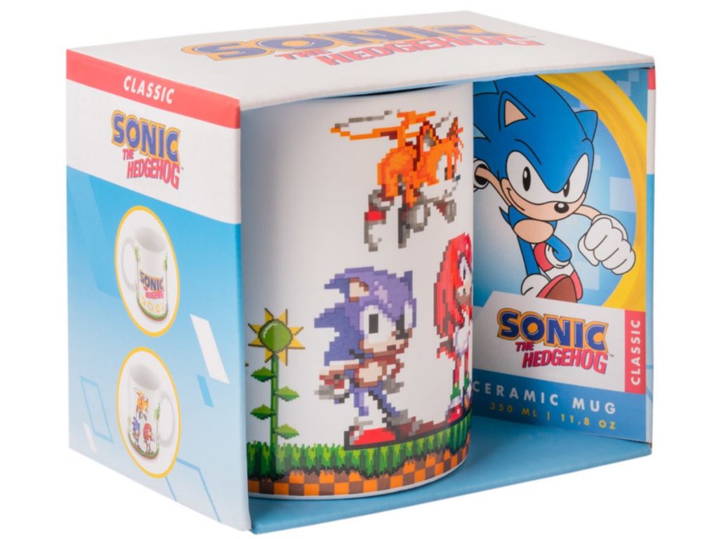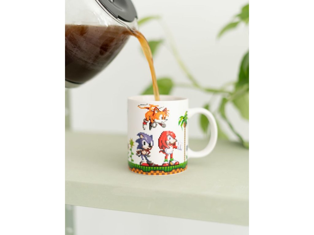 Bílý keramický hrnek s grafikou postav z retro plošinovky Sonic the Hedgehog. Hrnek je vhodný pro všechny menší i větší fanoušky a hráče her na konzoli.
