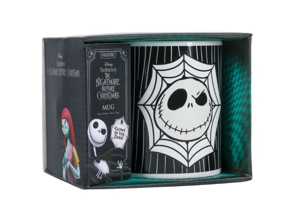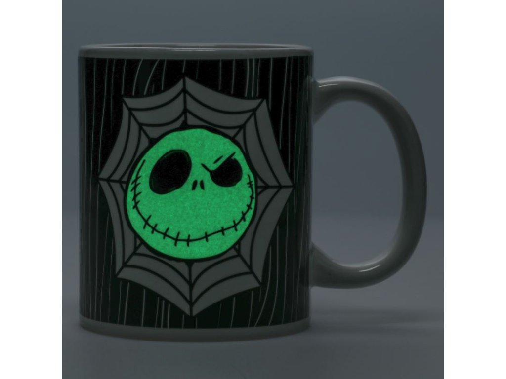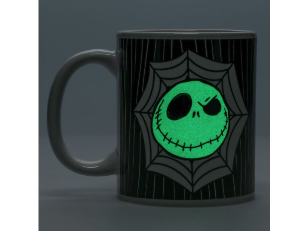 Dopřejte si strašidelný šálek s tímto hrnkem JackaSkellingtona z muzikálu the Nightmare Before Christmas. Černý keramický hrnek o objemu 300 ml (10 fl oz) svítí ve tmě. Popíjejte svůj drink v temné místnosti a sledujte, jak Jack Skellington ožívá! Předvánoční noční můra Jack Skellington je ideální pro fanoušky filmu Tima Burtona, Ukradené Vánoce.