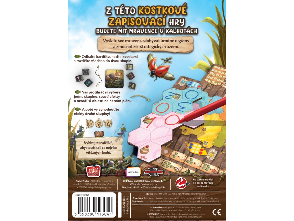 Vaším cílem je získat co nejvíce vítězných bodů. Toho dosáhnete strategickým rozdělením kostek na dvě skupiny a jejich využitím pro vyslání svých mravenců dobývat nová území, shromažďovat dortíky a získávat nové schopnosti obsazováním bedýnek.