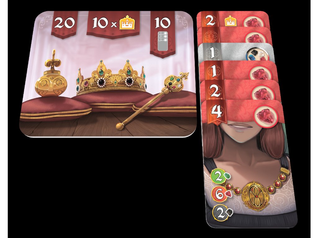 Získejte karty s působivými schopnostmi, využijte jedinečné výsady a bojujte o vzácný přístup k perlám. Jako mistr klenotnického cechu vytváříte majestátní ozdoby nejvyšší kvality pro panovníky a další mocné představitele renesance, abyste zvýšili svou prestiž a majetek. Máte však ambiciózního soupeře.