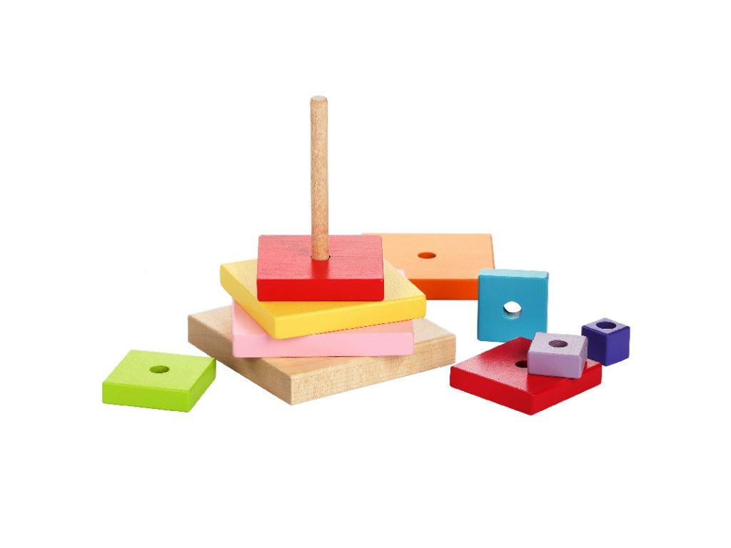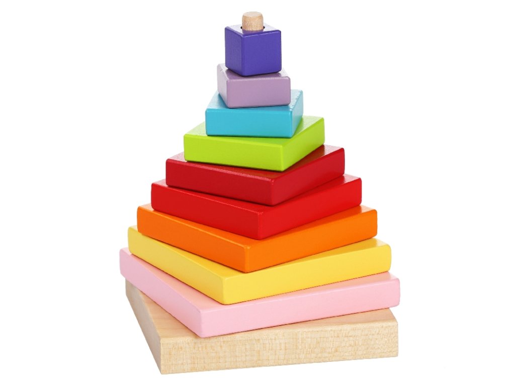 Barevná pyramida je dřevěná skládačka s 9 díly, které by na sebe měly být poskládány tak, aby bylo možné zachovat při stavbě správný tvar starodávné egyptské pyramidy.Vyrobeno v Evropě z ekologicky pěstovaného dřeva. Doporučený věk od 18 měsíců.