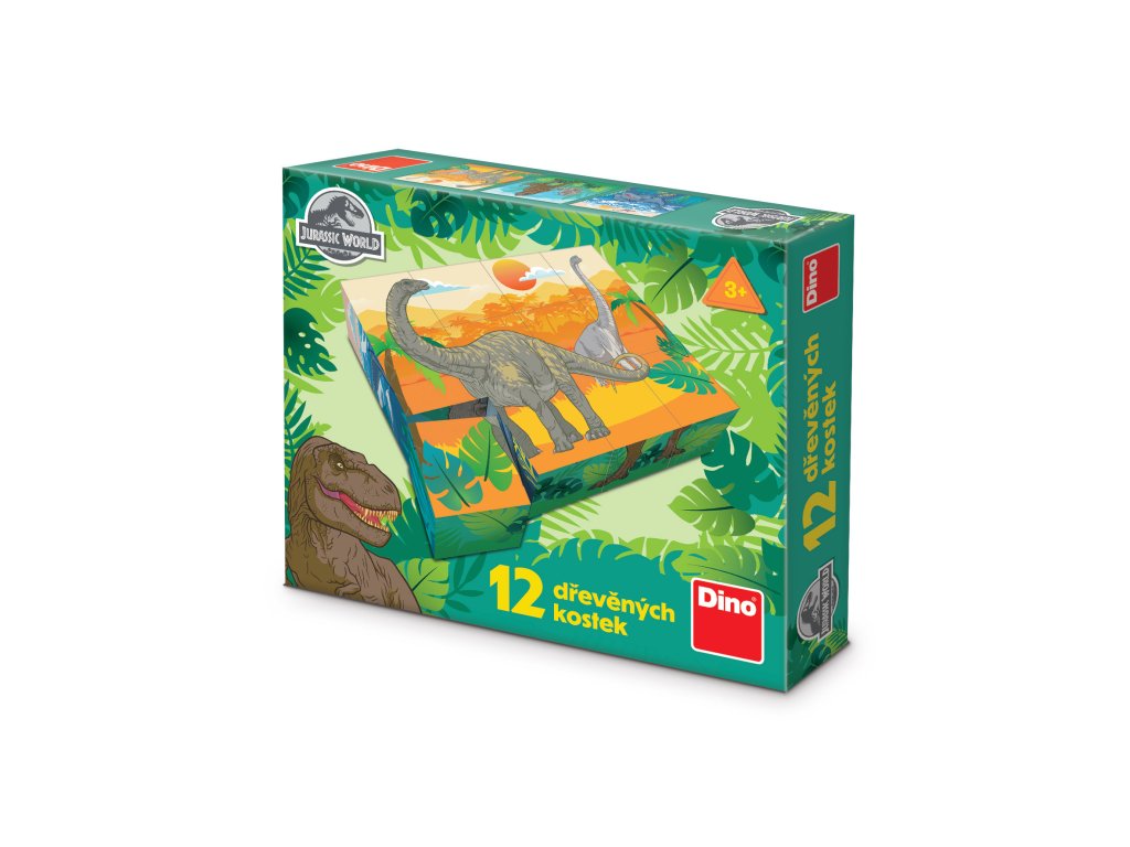 Dřevěné licenční kostky Jurský svět – 12 kostek