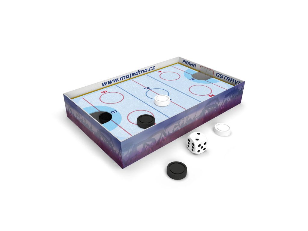 Malá krabička, velká hokejová zábava! Zahrajte si dvě rychlé cvrnkací hry a vstřelte nejvíce gólů do branky soupeře. Nebo zkuste své štěstí ve variantě hry s kostkou. Věk: 5+ Fadíme na mistrovství.
