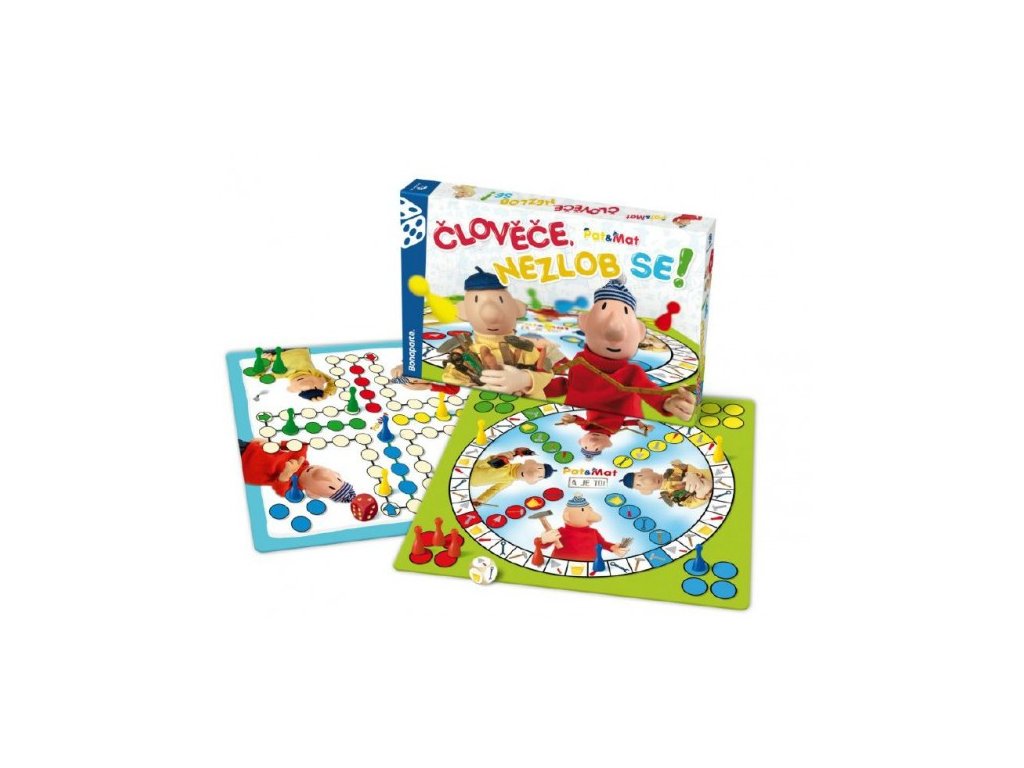 Člověče, nezlob se PAT A MAT je společenská hra po nejmenší děti, která však zabaví i rodiče. Pat a Mat přinášejí dvě varianty klasické hry. Pro nejmenší děti obrázkovou variantu, v níž hrací kostka místo bodů obsahuje obrázky nářadí. A pro ty, co již umí čísla, nabízí variantu klasickou. Obrázkové Člověče, nezlob se PAT a MAT mohou hrát děti již od tří let. Děti si při hře osvojí také schopnost soustředit se a rovněž i umění vyrovnat se s prohrou.