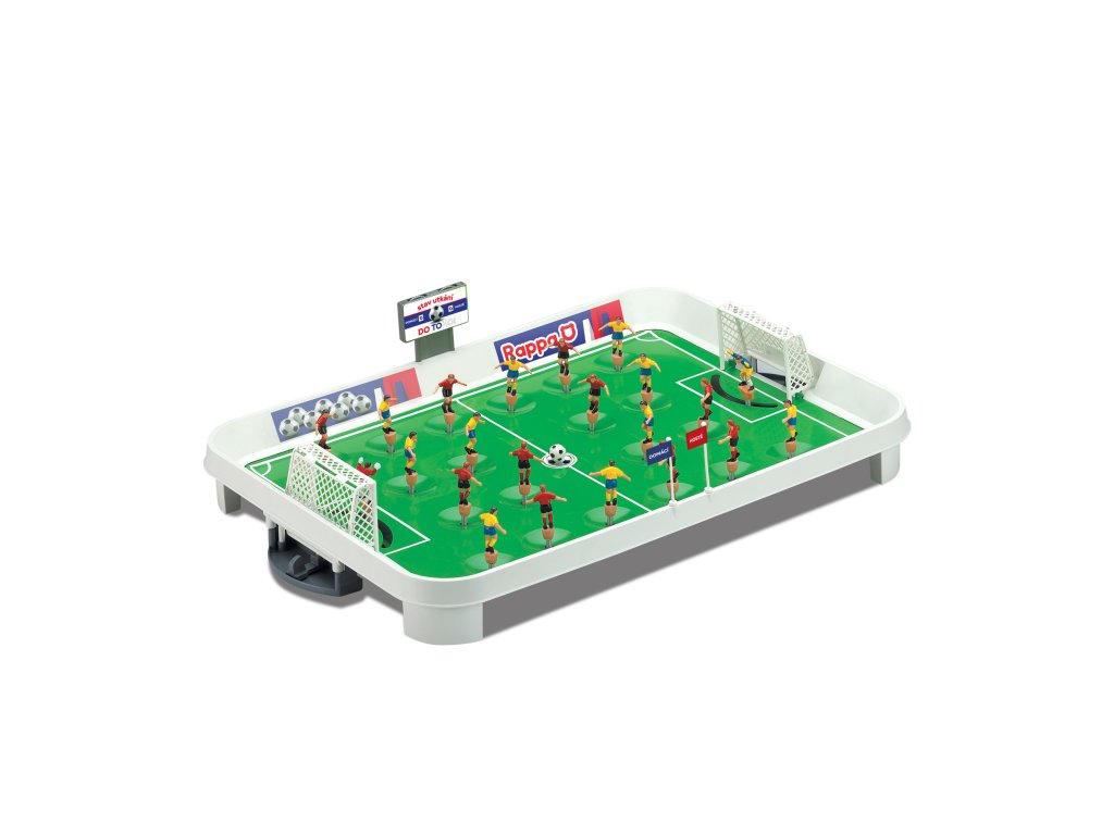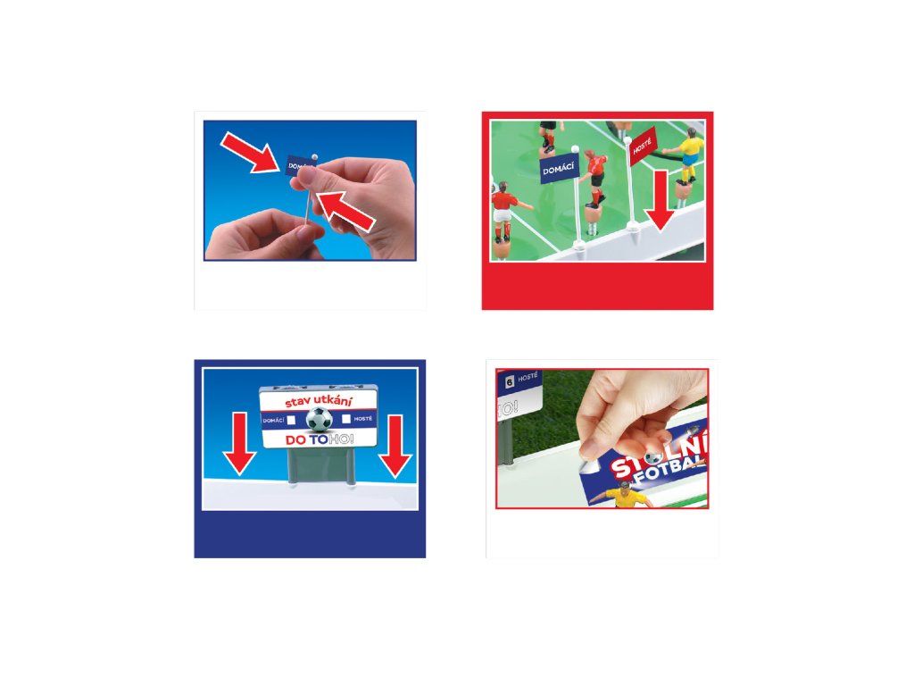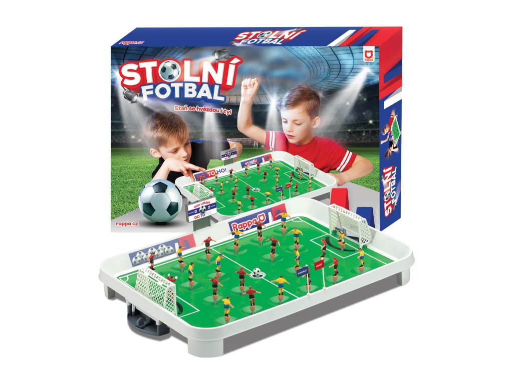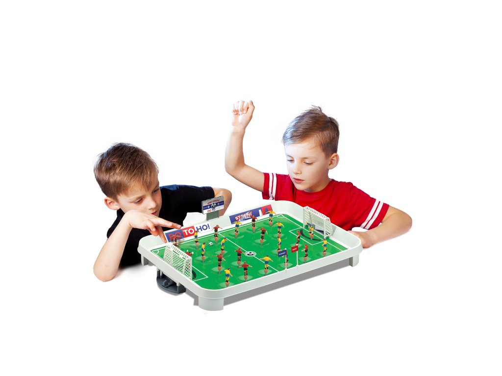 Stolní cvrnkací fotbal je oblíbenou hrou pro malé fotbalisty, ale i pro celou rodinu. Plastové hřiště obsahuje 22 hráčů, 2 branky, 1 míč, 2 stožáry s vlajkami a počítadlo gólů. S tímto fotbálkem své kamarády stoprocentně ohromíš. Tak zažij spoustu zábavy a zahraj si senzační zápas! Rozměr hrací plochy je cca 44 x 30 cm.