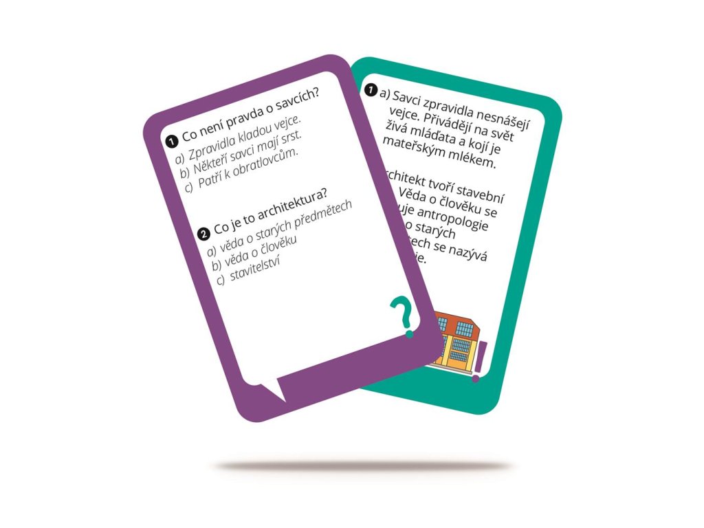Na každé kartě se nachází vždy dvě otázky. Odpovědi uvidíte po otočení na druhé straně. Cestovní balení je ideální nejen na výlety, ale třeba i do školního batohu. O přestávce se bude hodit!