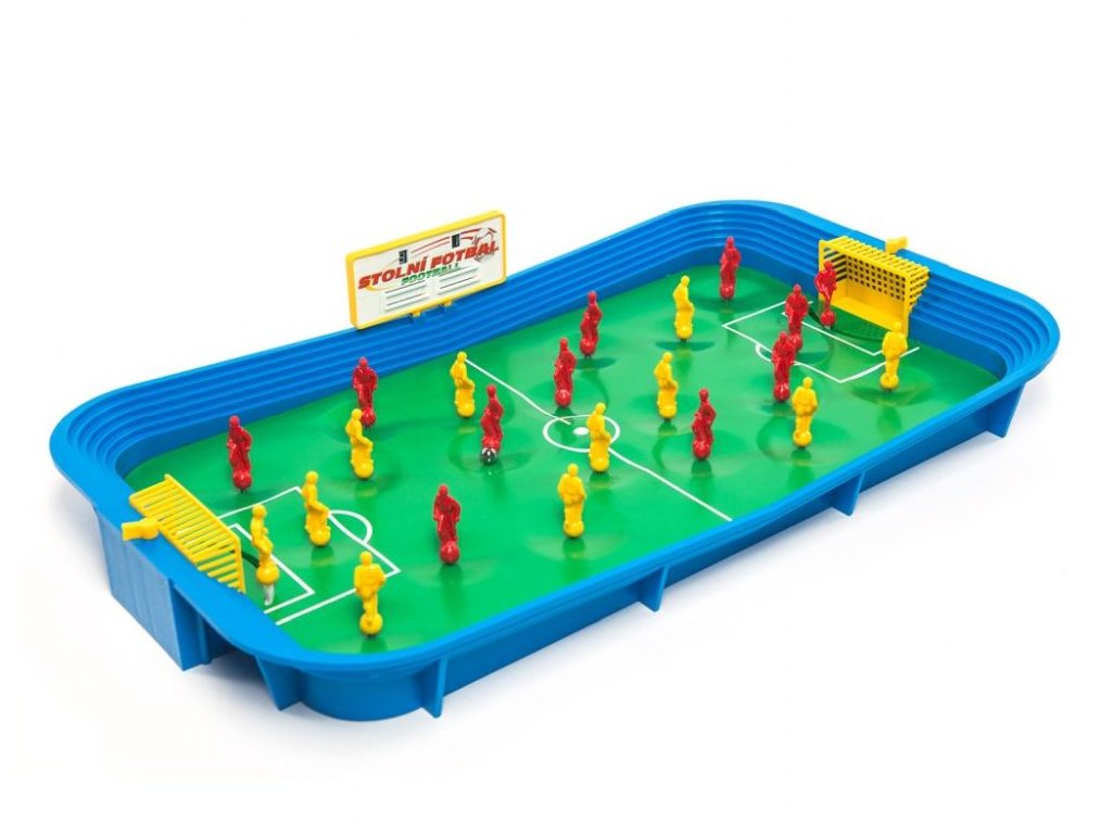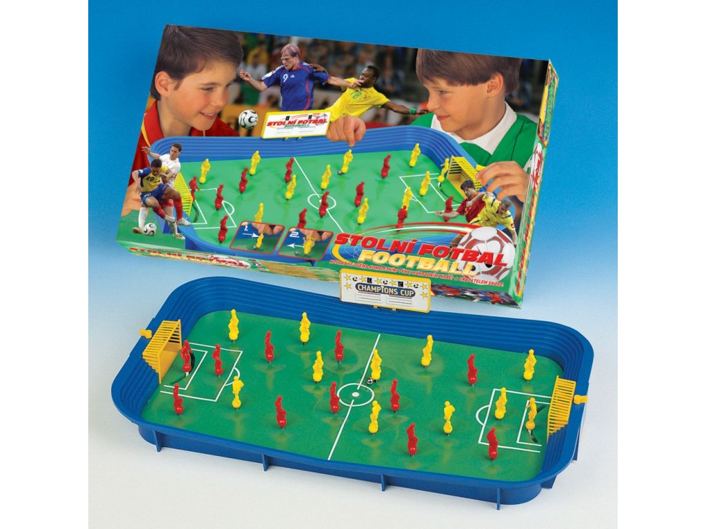 Společenská hra kopaná. Hra obsahuje dva kompletní týmy, náhradní hráče a ukazatele skóre. Rozměry hry jsou 5,5 x 30 x 51 cm. Hračka je vhodná pro děti od 4 let.
