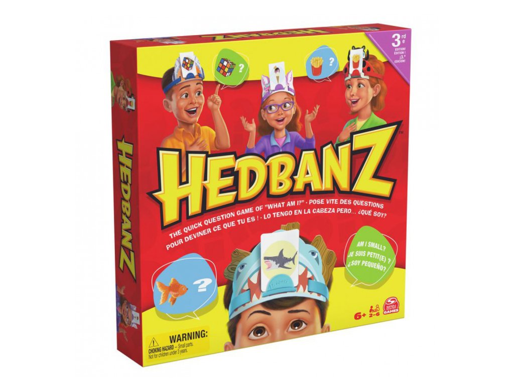 Rychlá hádací hra „Co jsem?“ je zpátky v druhém vydání! Hedbanz od Spin Master Games je zábava pro celou rodinu! V této nové hře je 6 nových čelenek: dinosaurus, narval, robot, květina, motýl a mozek. Také tu jsou zbrusu nové ilustrace na kartách jako například „Jsem sluneční brýle“ nebo „Jsem had“. Pokládejte kreativní otázky typu „Jsem pizza?“ nebo „Jsem pes?“, abyste zjistili, co je na vaší kartě z kategorie zvíře, věc nebo jídlo. Hra Hedbanz je jednoduchá: stačí vzít kartu, umístit ji a hrát! Vyberte si jednu čelenku a vezměte kartičku s obrázkem, aniž byste se na ni dívali. Nasaďte si čelenku a zasuňte kartu do čelenky tak, aby obrázek mířil k ostatním hráčům. Hra se hraje pomocí otázek s odpověďmi „ano“ a „ne“; vaším cílem je uhodnout, co máte na kartě. Staňte se prvním hráčem, který nasbírá tři odznáčky, a vyhráváte! Hedbanz je nezbytným doplňkem vaší sbírky deskových her pro děti ve věku 8–12 let, ale pobaví každého od 6 let výš. Je vhodná pro 2–6 hráčů a poslouží vždy, když budete potřebovat hračky pro dívky ve věku 6–8 let, rodinné deskové hry nebo hry pro děti. Hedbanz je společenská aktivita pro celou rodinu, která pobaví všechny generace. Je to klasická hra s hádáním obrázků, která je známá už roky! Ať už hledáte deskové hry pro děti ve věku 6–8 let nebo zábavné hry, tato nová edice Hedbanz plná nových barevných karet a roztomilých čelenek vás určitě pobaví. Díky jednoduchým pravidlům je hra srozumitelná pro všechny. Začněte hádat s druhým vydáním Hedbanz! Spin Master přináší dětem zábavu v podobě hraček a her včetně hraček pro batolata, hraček pro dívky a deskových her. Sbírejte své oblíbené plyšáky, antistresové hračky, auta na dálkové ovládání, akční figurky, panenky a příslušenství a mnoho dalšího. V našem katalogu najdete ideální dárek ke každým narozeninám, od speciálních dárků pro děti a batolata až po dárky pro ty, kteří zůstávají mladí duchem. Pokud chcete ještě víc, podívejte se na vzdělávací hračky pro děti, hračky do bazénu, venkovní hry a monster trucky vhodné pro každé roční období. Buďte kreativní s výtvarnými sadami, stavebnicovými hračkami a autíčky na dálkové ovládání nebo skládejte skládačky pro dospělé a hrajte karetní hry. Roztočte to na pískovišti ještě dnes se Spin Masterem!