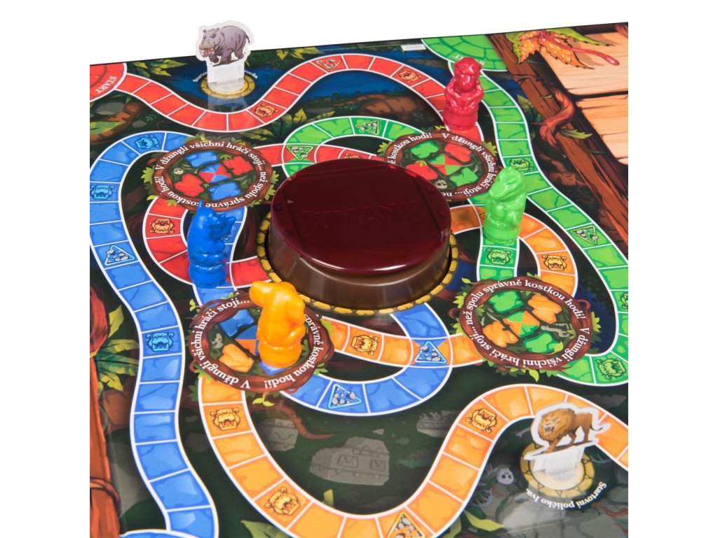 Známá hra v nové podobě. Hoďte osmistrannou kostkou a uvidíte, co vás čeká. Karta nebezpečí vám s pomocí dekodéru pomůže rozluštit tajnou zprávu, zachraňte se před koncem světa. Všichni hráči závodí s časem, aby přežili. Jinak vás a vaše spoluhráče džungle porazí. Obsahuje: 1 hrací desku, 4 barevné figurky, 1 figurku nosorožce, 1 přesýpací hodiny, 1 číselnou hrací kostku, 4 kostky záchrany, 30 karet nebezpečí, 1 dekodér, 1 návod. Hra pro 2-4 hráče od 8 let.