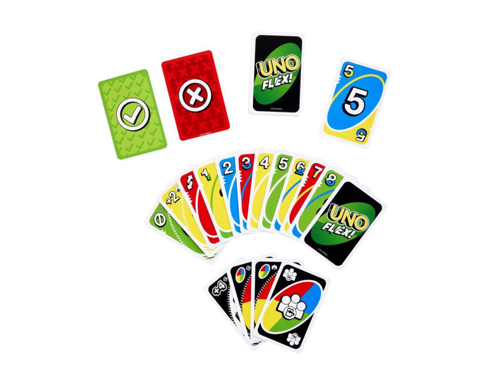 Karetní hra UNO™ Flex vychází z karetní hry UNO®, kterou hráči znají a milují, ale je flexibilní. Speciální karty umožňují hráčům změnit barvu karty a vytvořit tak shodu - z červené 4 se může stát zelená 4 v jednom flexu. Karty síly a akční karty Flex přidávají do hry ještě více obratů! Hra je ideální pro rodiny, večírky a herní večery, a je skvělým dárkem pro fanoušky UNO® a milovníky karetních her ve věku od 7 let. Barvy a provedení se mohou lišit.