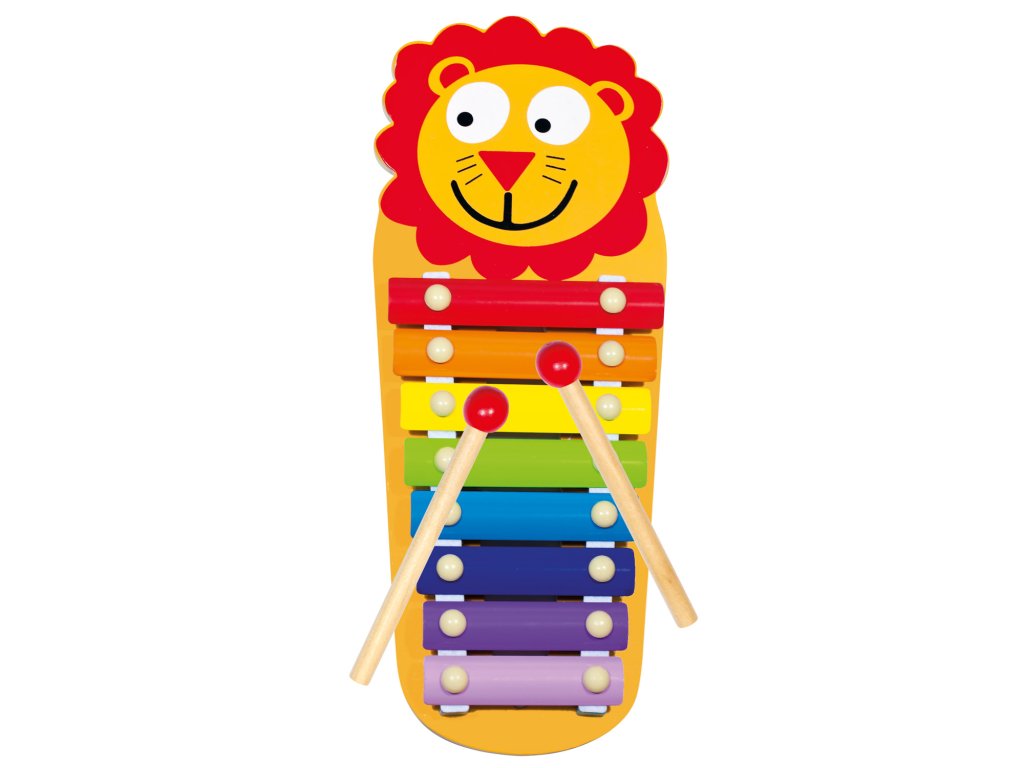 Dětský xylofon s motivem lvíčka. 3-dílná sada s 8 kovovými zvukovými pláty, které nabízejí hraní v plném rozsahu. Xylofon nabízí dětem příležitost seznámit se se základy hudby a rozvíjet svůj hudební talent. Je tak ideální hračkou pro první dětské hudební kroky.