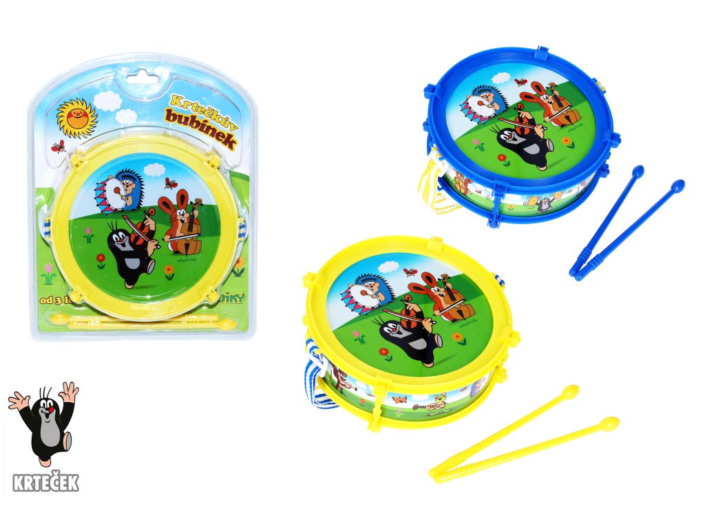Buben krtek. Rozměry 20 x 6,5 cm. 2 varianty - modrá, žlutá.